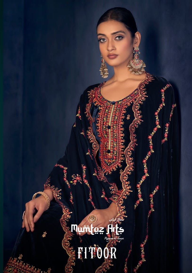 MUMTAZ ARTS FITOOR PURE VELVET EMBROIDERY SUITS SUPPLIER SURAT