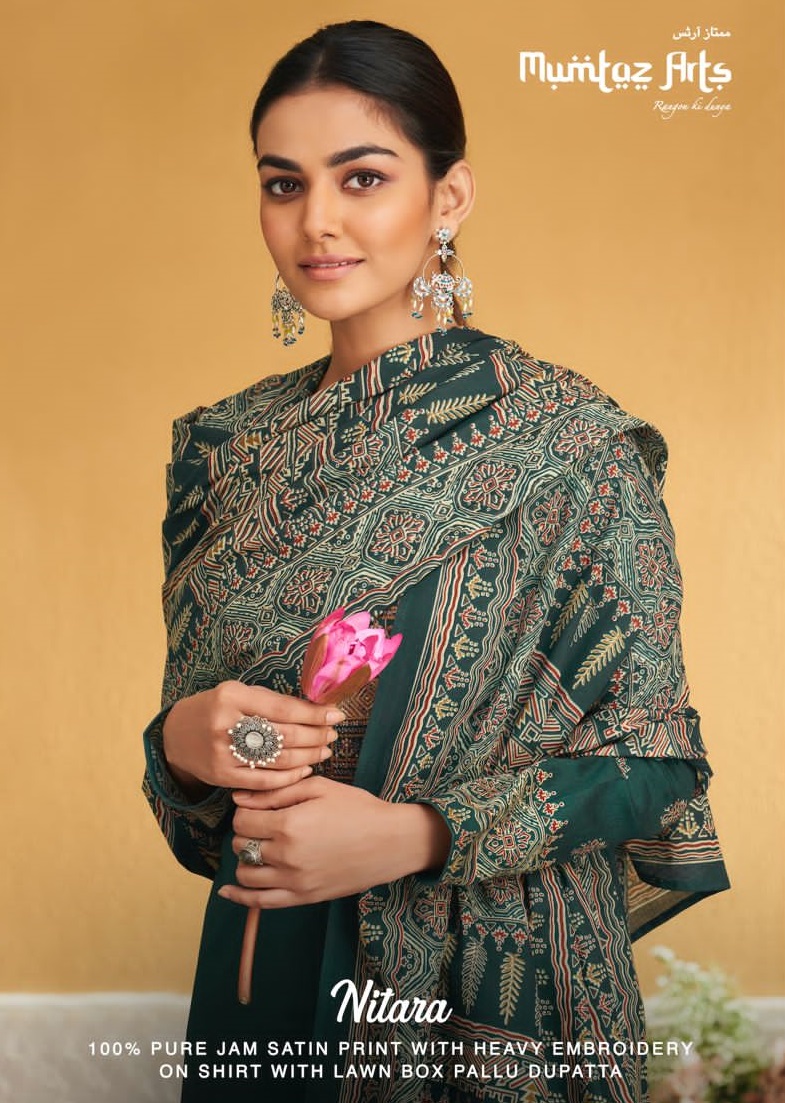 MUMTAZ ARTS NITARA JAM SATIN HEAVY EMBROIDERY SALWAR KAMEEZ CATLAOG