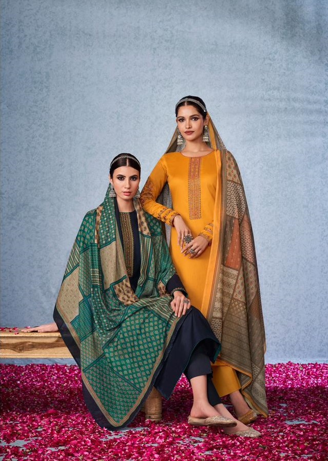 MUMTAZ ARTS KASHNI TWIL PASHMINA PRINT EMBROIDERY SUITS WHOLESALE