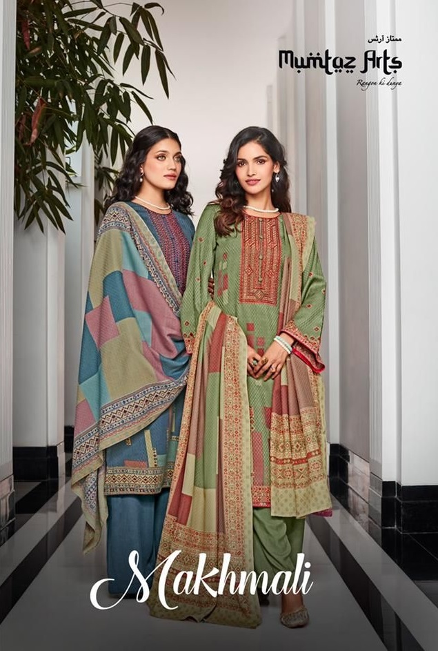 MUMTAZ ARTS MAKHMALI PASHMINA PRINT EMBROIDERY WINTER SUITS WHOLESALE