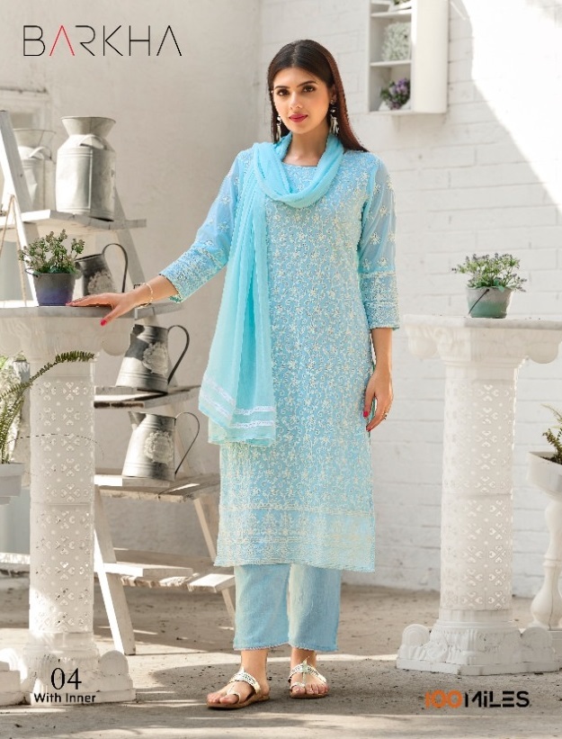 | DETAILS | Style : Kurti + Pant + Dupatta *3 Psc Readymade set* with inner.TYPE : Premium *georgette heavy schifli* 3 psc readymade set with pure cotton inner.SIZES : M to 2XL *(Kurti with pants and dupatta) Pieces: 4 per Bag |