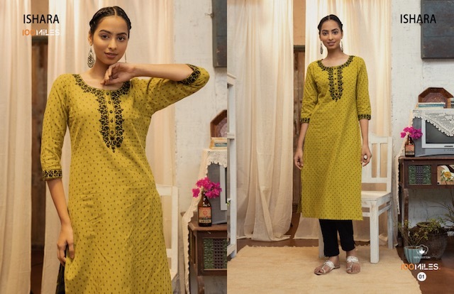 100 MILES ISHARA COTTON EMBROIDERY KURTIS MANUFACTURER SURAT