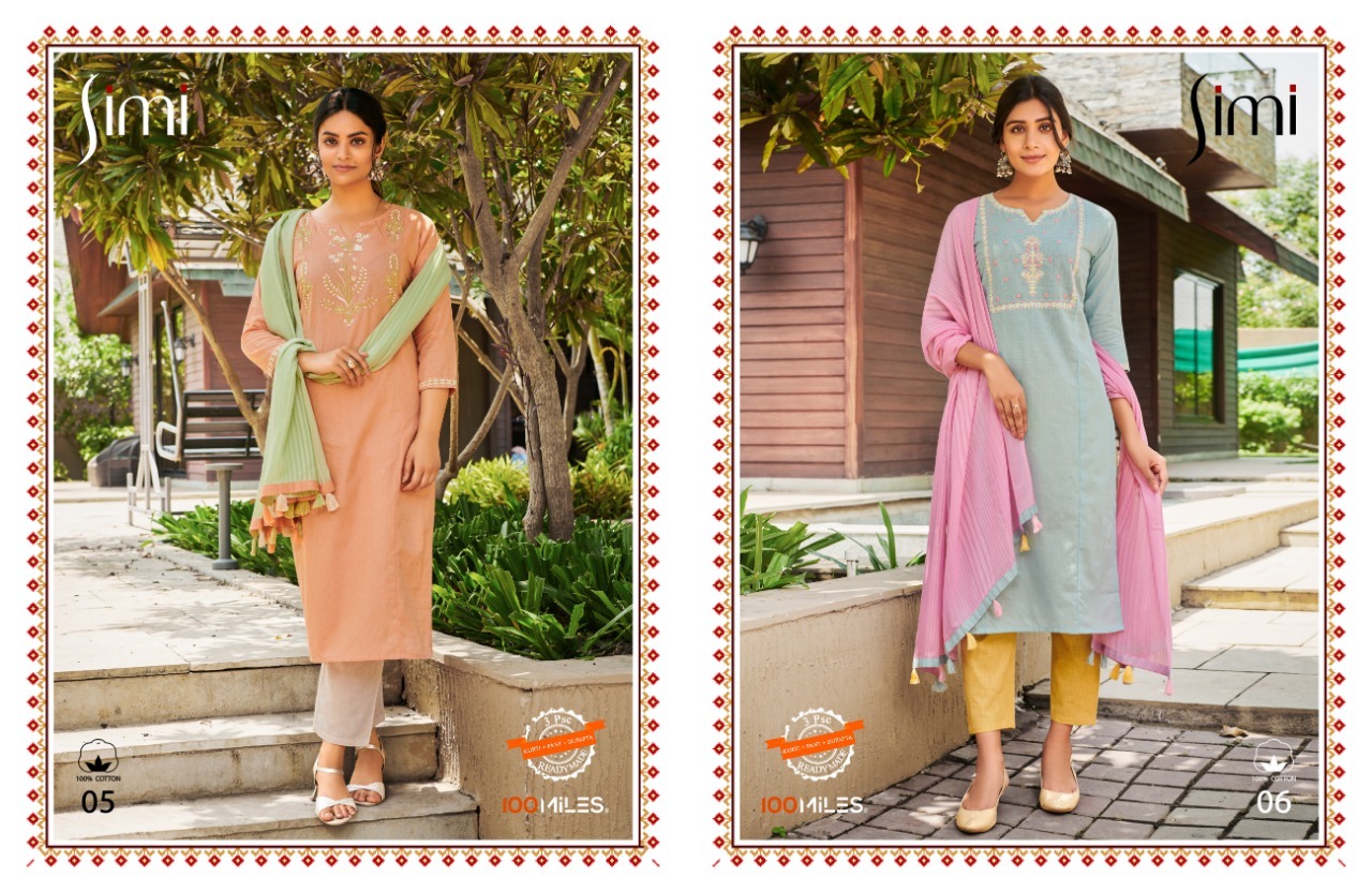 100 MI100 MILES SIMI COTTON EMBROIDERED KURTI PANTS WITH DUPATTALES SIMI COTTON EMBROIDERED KURTI PANTS WITH DUPATTA