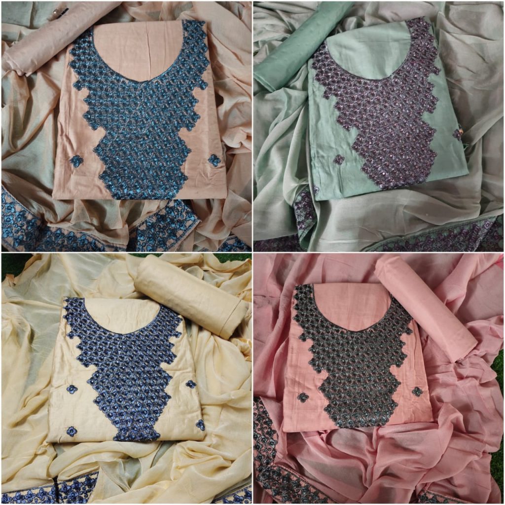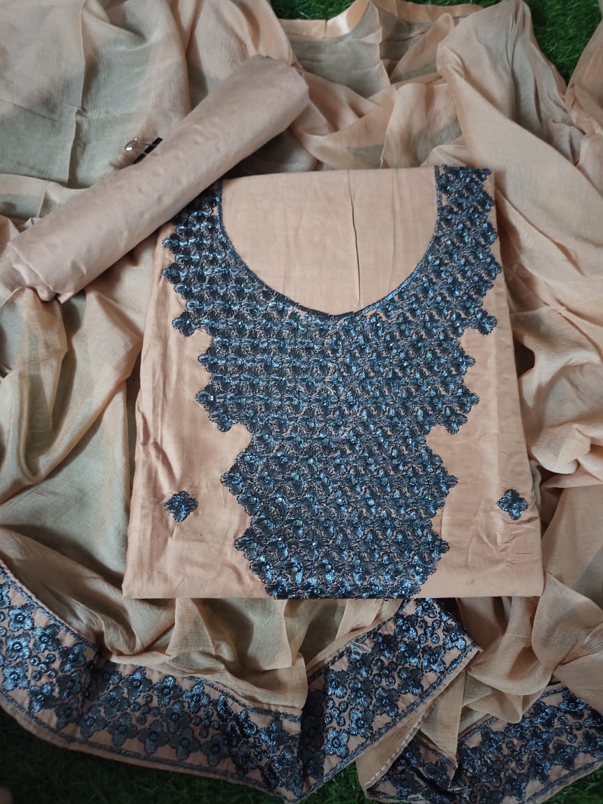 | DETAILS | MANCHALI ? Fabric Details ?Top: JAM COTTON with HAVEY Embroidery ?Bottom: PURE COTTON ?Dupatta :- chiffon ONE SIDE HAVEY LACE *RATE :- 550/-* REDAY TO DISPATCH |