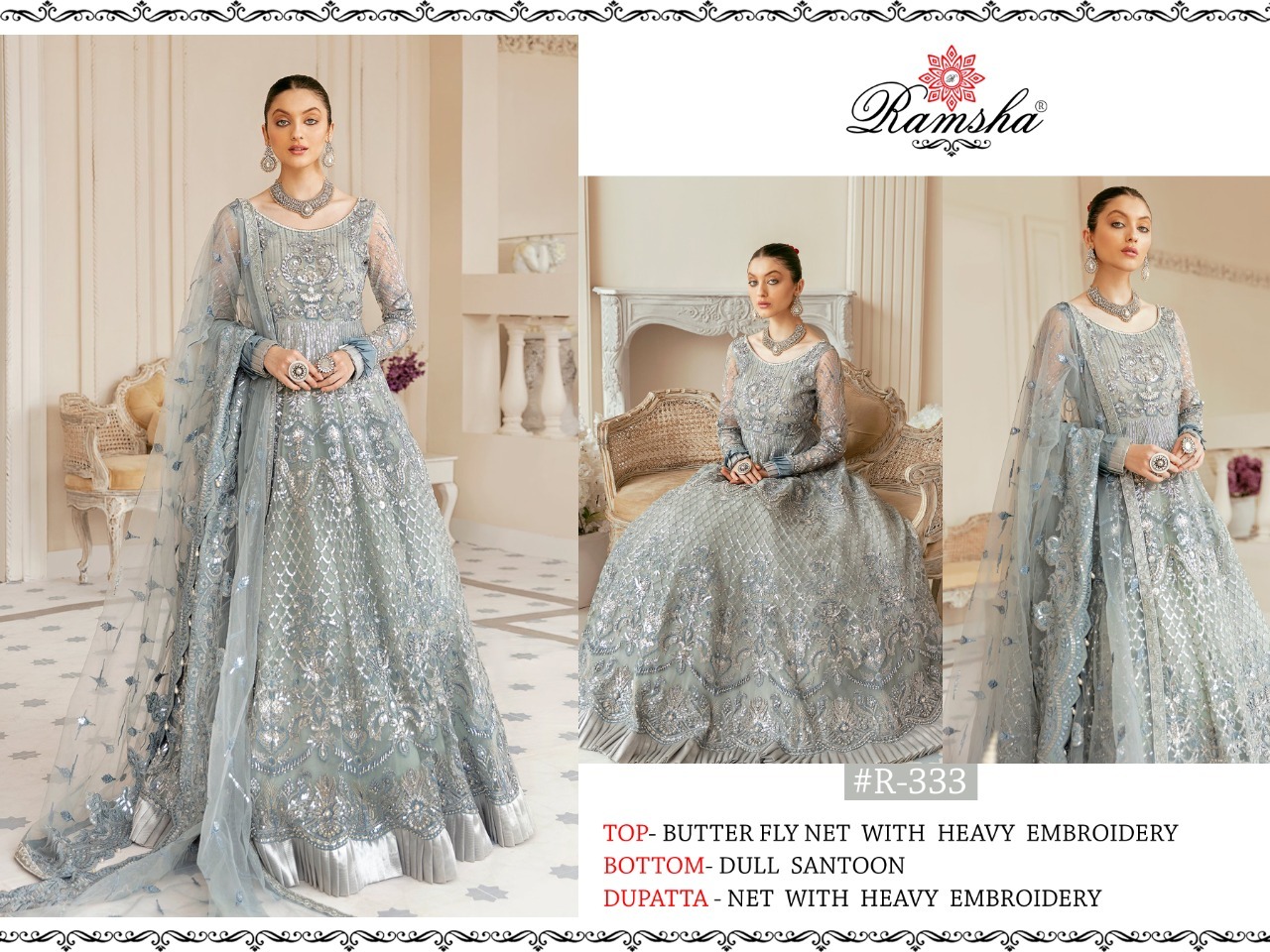 RAMSHA VOL 17 R-331 R-332 R-333 R-334 PAKISTANI SUITS WHOLESALER