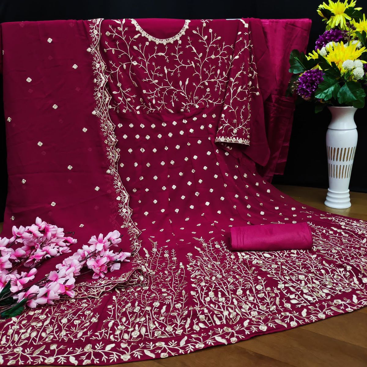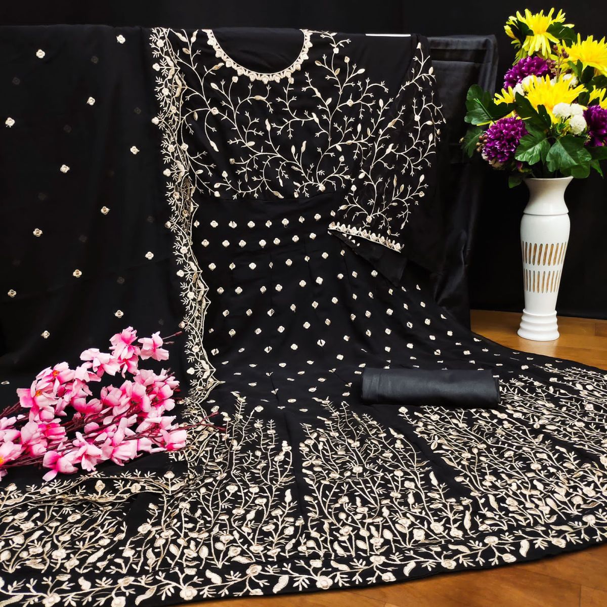 | DETAILS | *FABRIC**Top. – Georgette Bottom- Santool Dupatta –Georgette*8 Colours * |