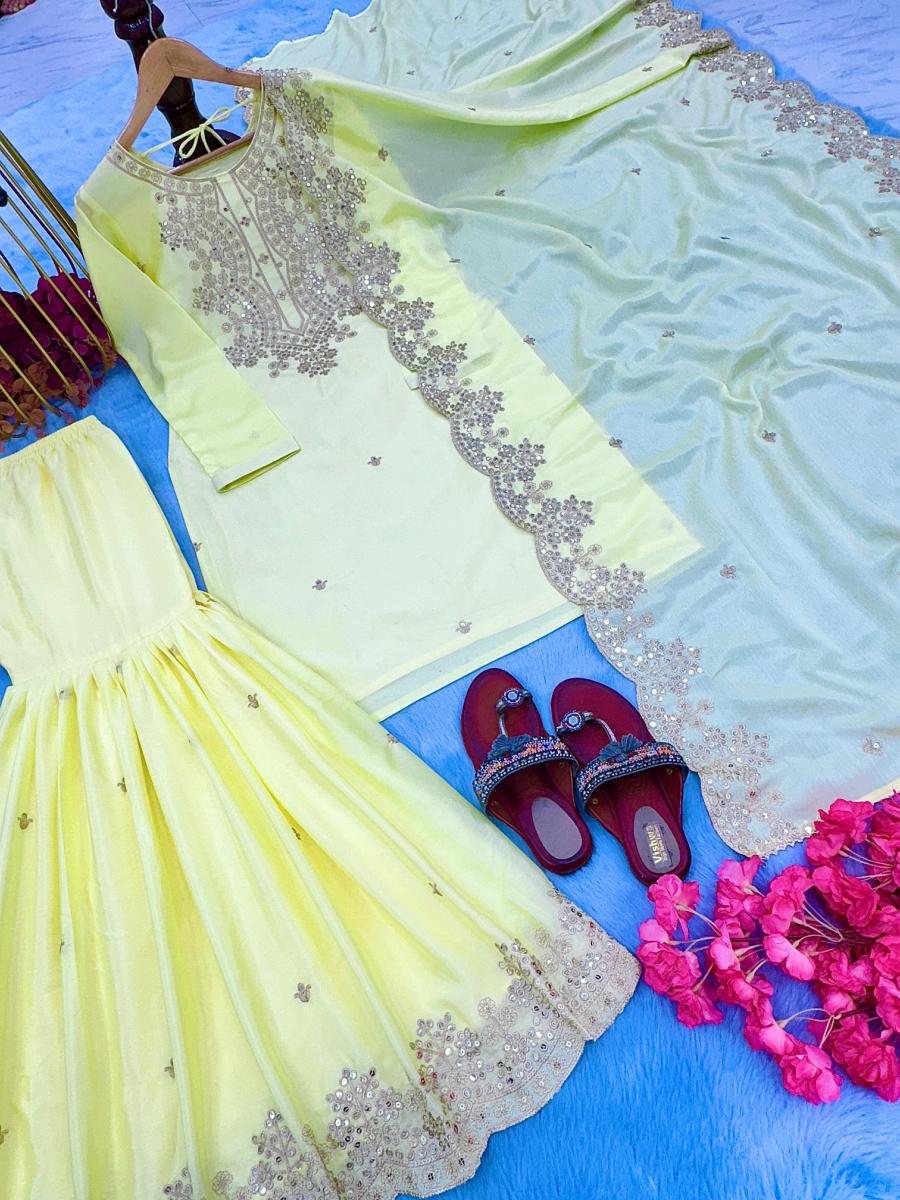 Top Size : up to 42 XL Free SIze & XXl 44 Margin (Full Stitched )Plazzo Fabric:Pur Chinon With Embroidery 5 mm Sequence Work