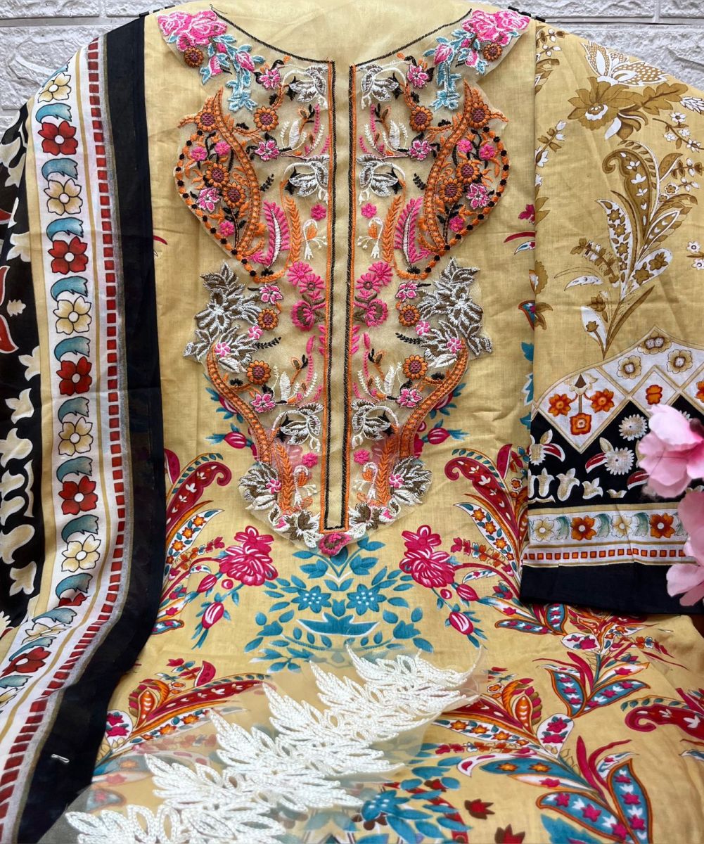 | FABRIC DETAILS | Top pure cotton print with exclusive HEAVY embroidery 2 pathesBottom semilawnDupata ciffon/lawan |