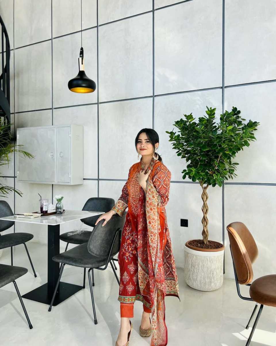 | FABRIC DETAILS | Top: Pure Cotton Print with heavy Self embroideryBottam: Semi lawnDupatta: Silver chiffon / Cotton mal |