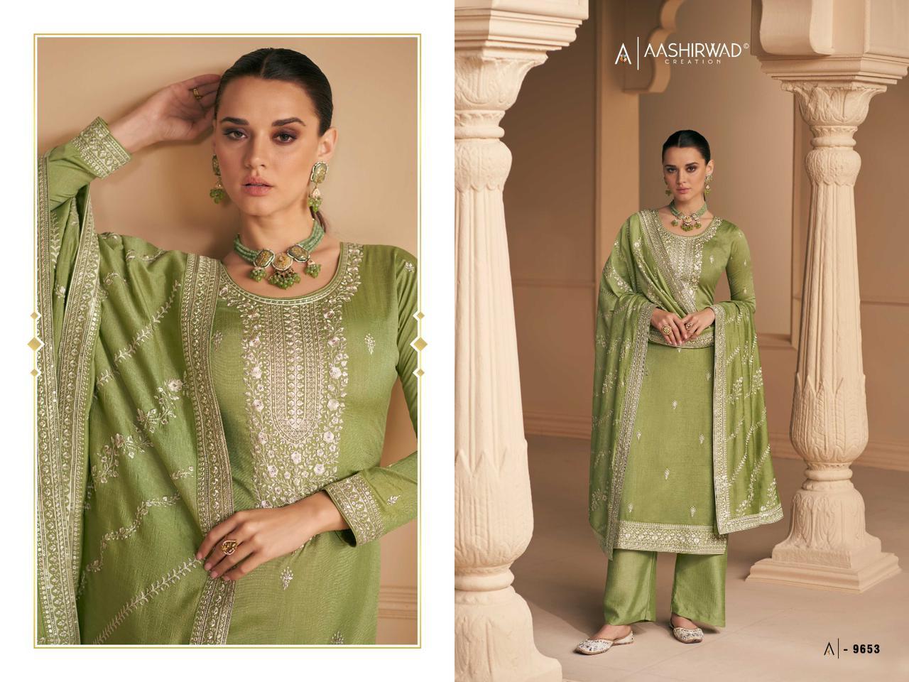 AASHIRWAD GULKAND FALAK PREMIUM SILK SALWAR SUITS WHOLESALER SURAT