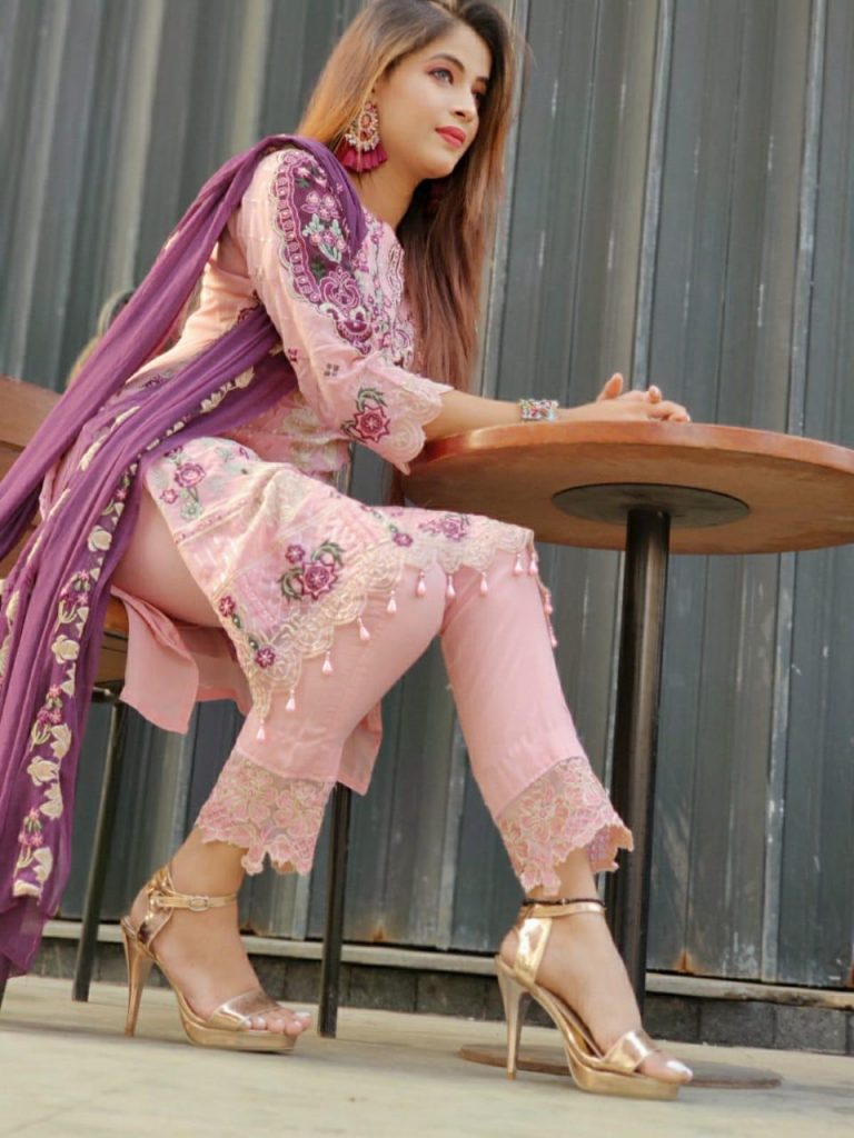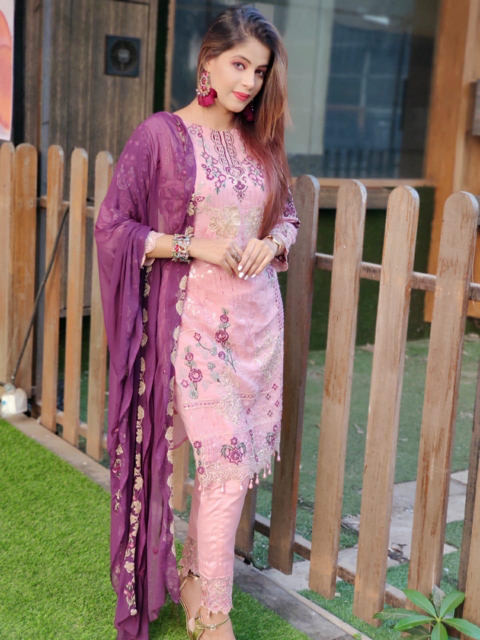 | DETAILS | ? Top :- Faux Georgette With Heavy Embroidery & Sequence Work ?Bottom :- Santoon With Patch ? INNER :- Santoon ?DUPATTA:- Nazmin Chiffon With Embroidery Work Note :- *PREMIUM QUALITY BRAND* |