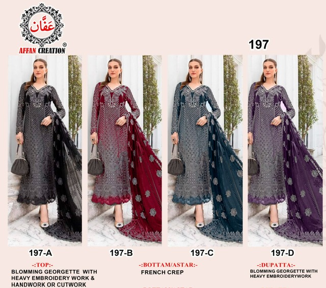 AFFAN CREATION D.NO 197 PAKISTANI SUITS WHOLESALER