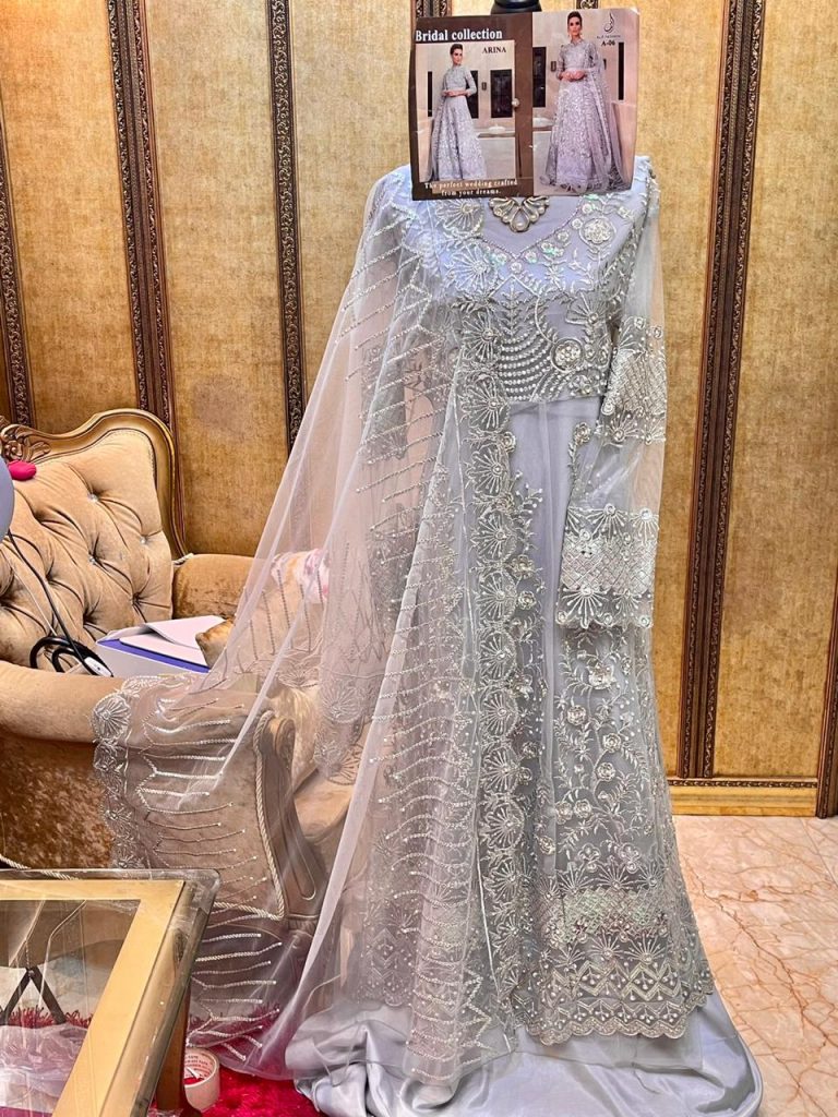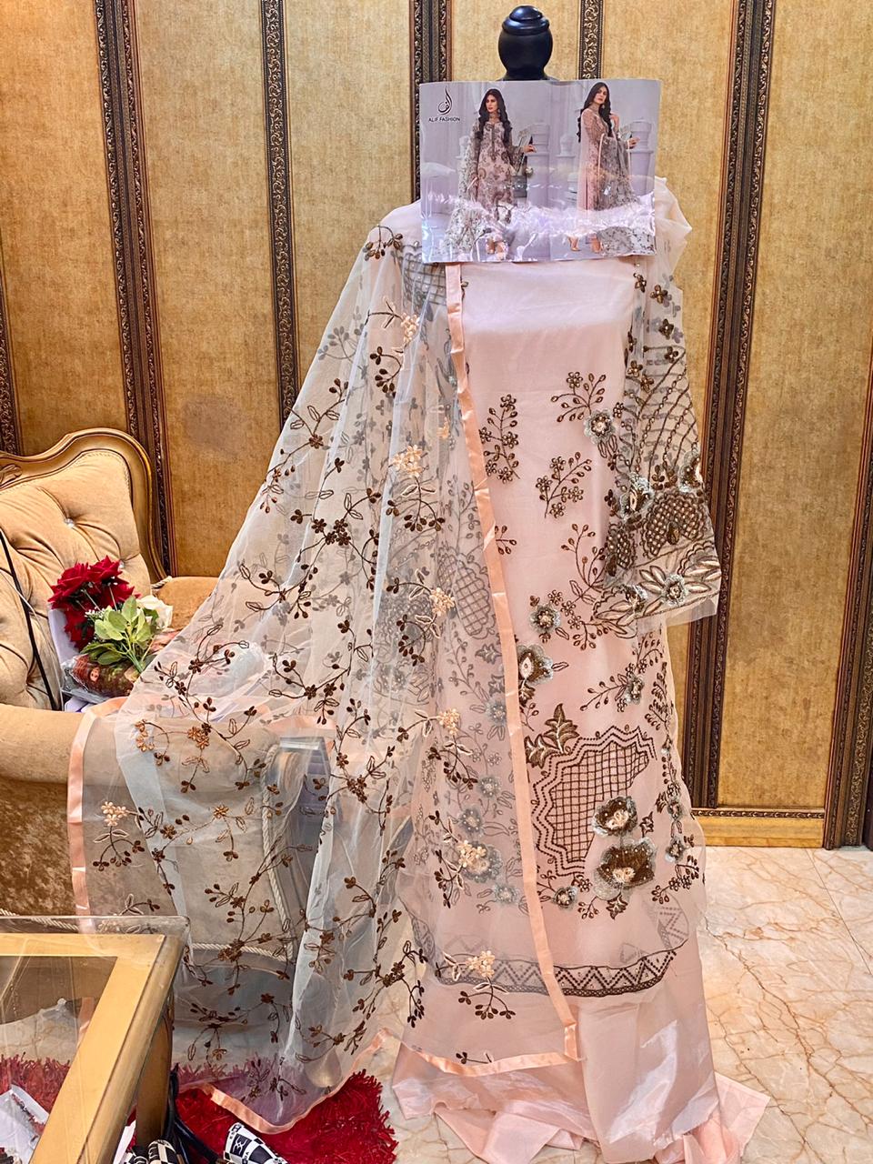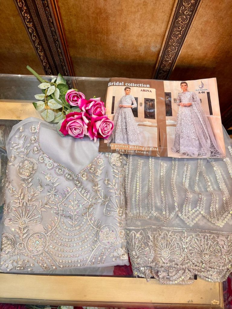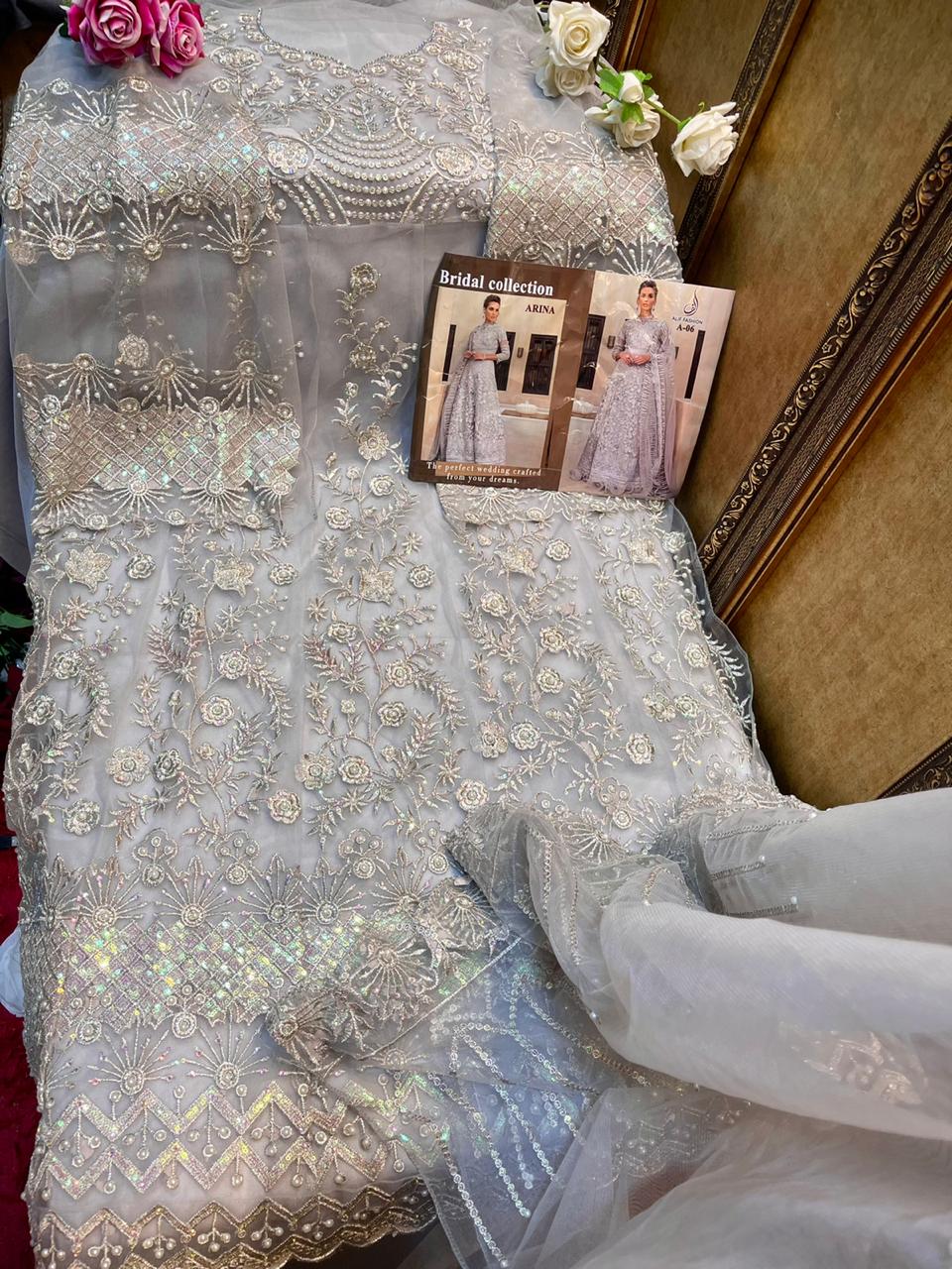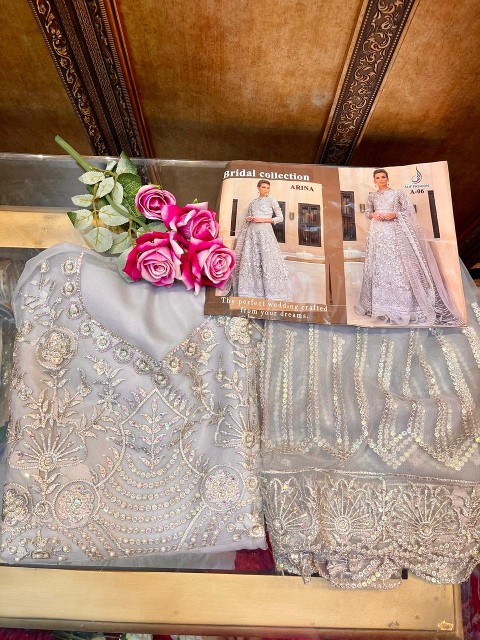| DETAILS | Top:- Butterfly Nett with heavy embroidery work with hand work Sleeve: butterfly Nett with heavy embroidery work with Hand work Bottom & inner : heavy santoon Dupatta: Butterfly net with embroidery work with Fancy Border Lace with cut work *Company Rate:- 1300 /- Only* |