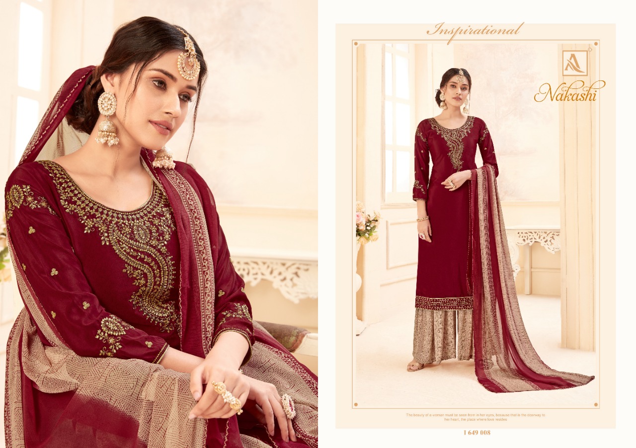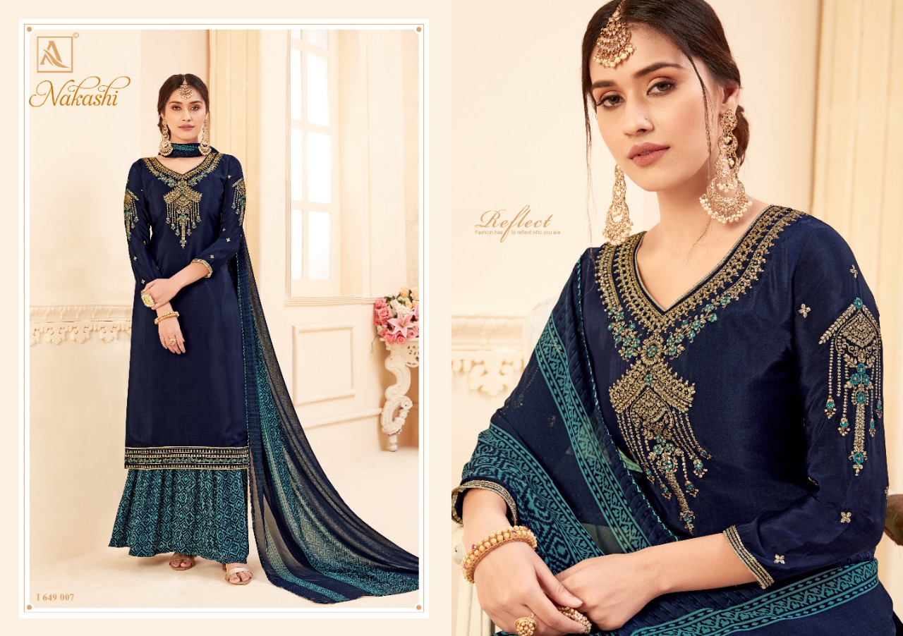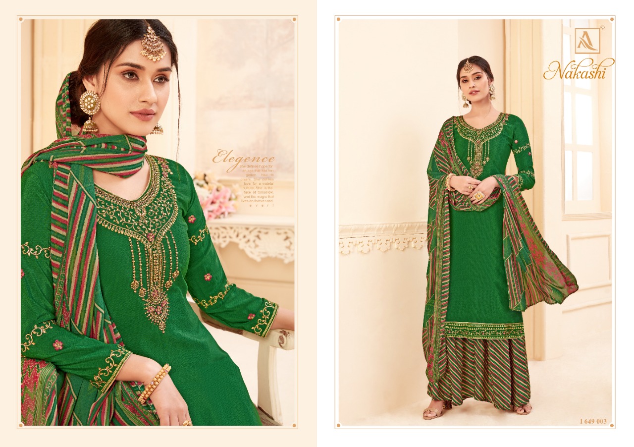 | DETAILS | ? *Alok Suit – Make in India* ? Launches its New Catalog: *NAKASHI* *Fabric Details:* ? Bottom: Pure Fine Crep Patiyala Salwar ? *DUPPATTA: Pure Georgette Fancy Print Dupatta with Four Side Lace* ?The single set has: 8️⃣Pcs Rate – ₹ 8️⃣2️⃣5️⃣+ 5⃣% GST With Fancy ?Bag Packing Happy Shopping… |