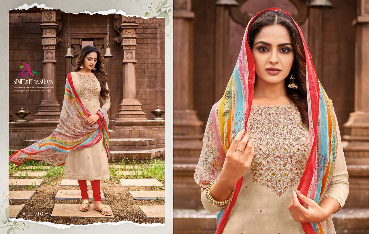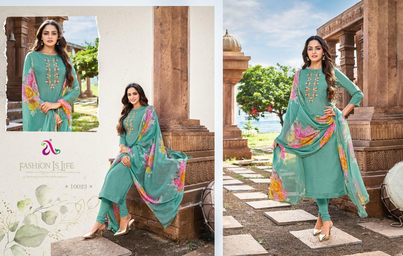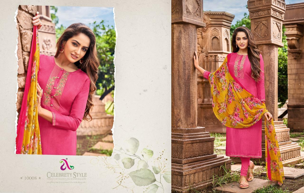 | DETAILS | Fabric details *10010.pure Masline printed silk* *Top-chanderi cotton * *Bottom- cotton* *Dup-chiffon print* *Designes-16* |