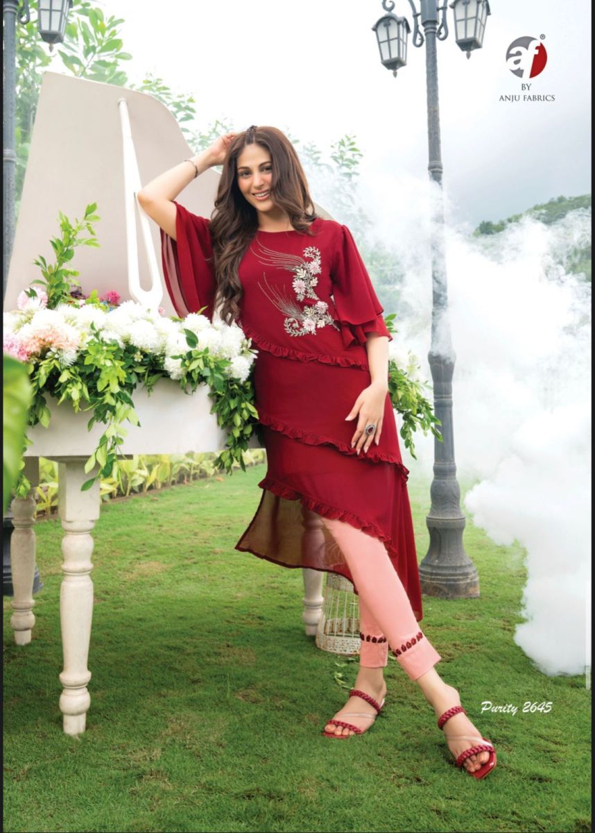 ANJU FABRICS PURITY VOL 3 DESIGNER KURTI WITH PANTS MANUFACTURER SURAT