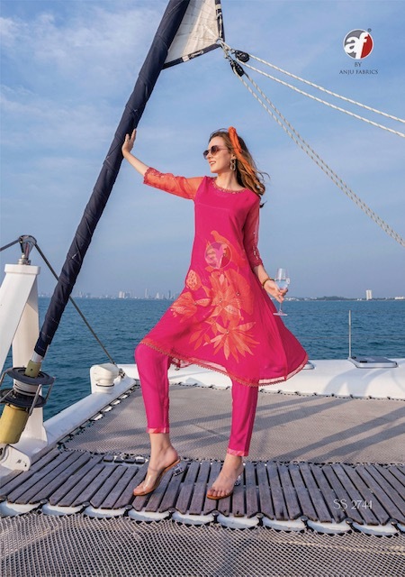 ANJU FABRICS STOLE STORY NATURAL CREPE SILK PRINT KURTI WITH PANT NEW CATALOGUE