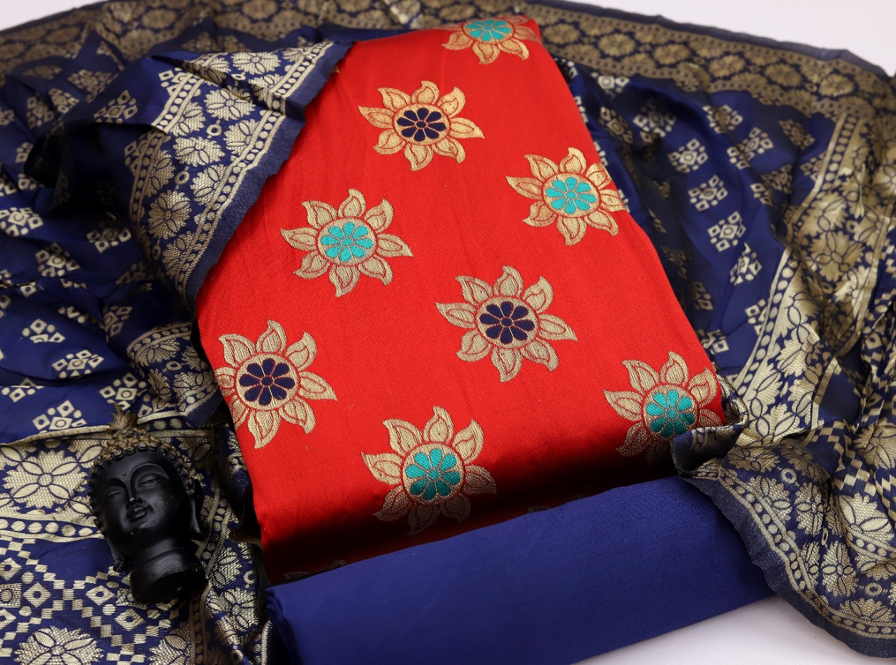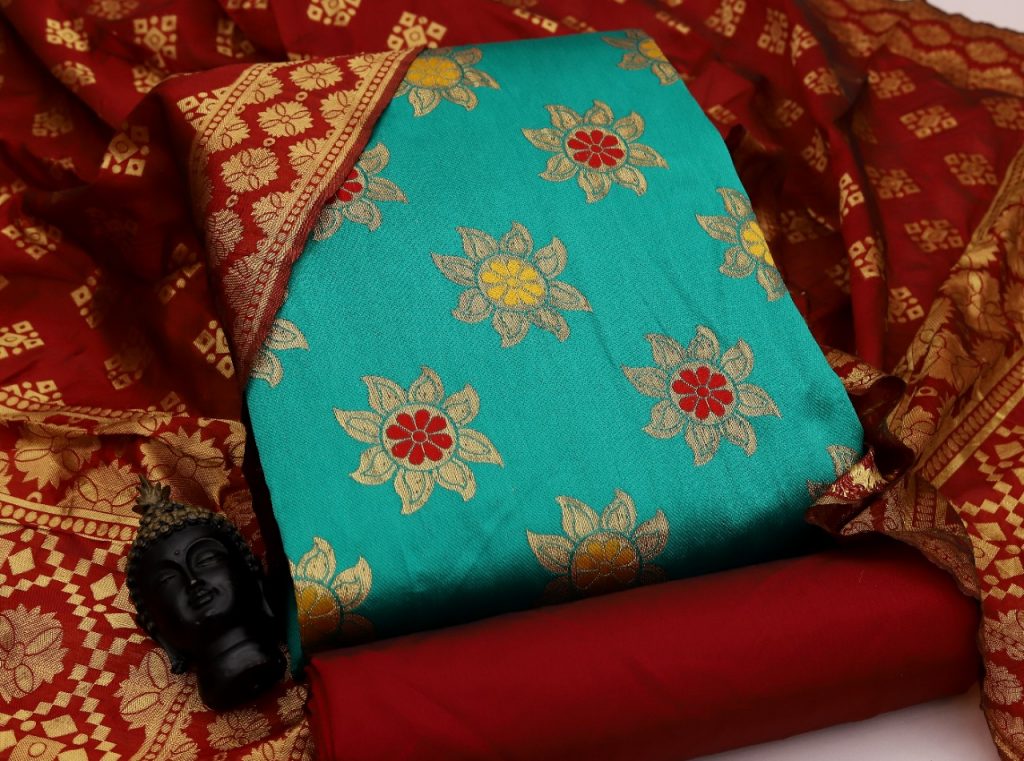 | DETAILS | *TOP : BANARASI SILK (2.50 MTR)* ?*BOTTOM : COTTAN ?*DUPATTA : JECQUARD WEAVING (2.20 MTR)* |