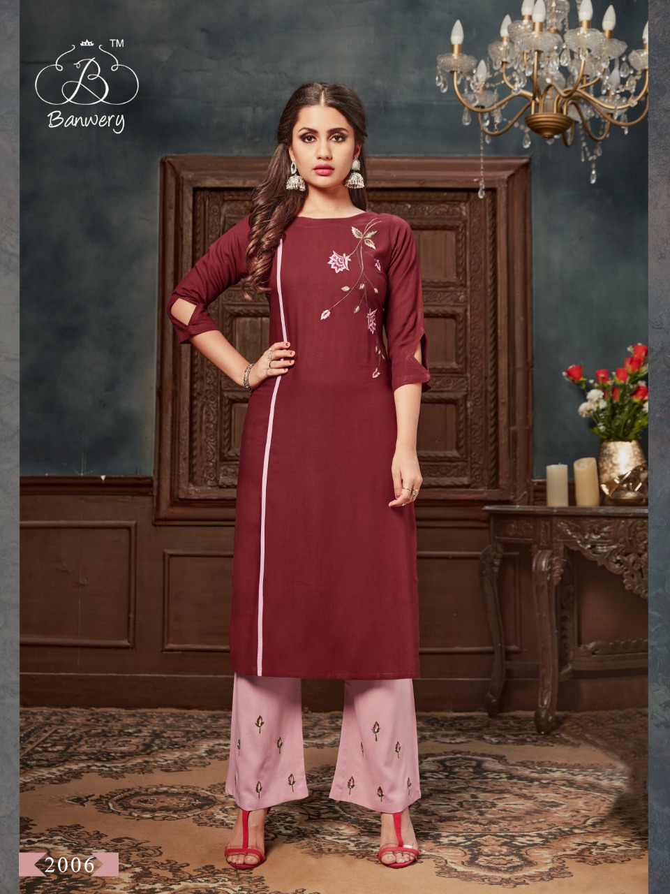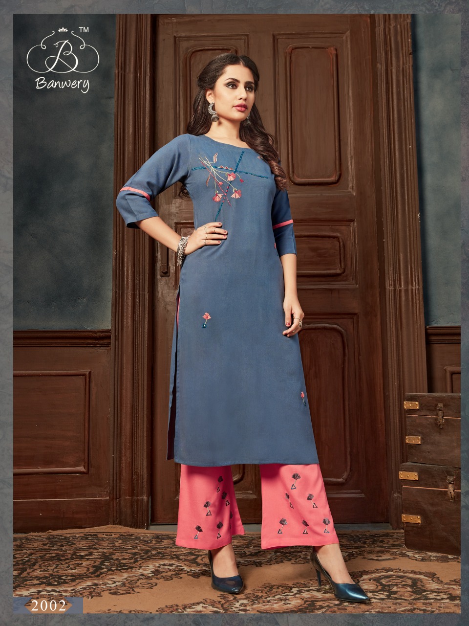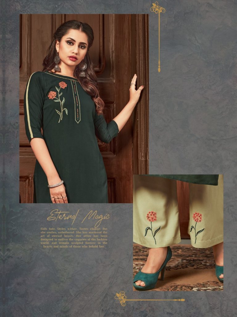 | DETAILS | TWO PIECE CATALOGUE KURTI WITH PLAZZO – *TOP* – *PLAZZO* – *WORK* – TOP 46″ inch length Size : *M(38), L(40), XL(42), XXL(44)* |