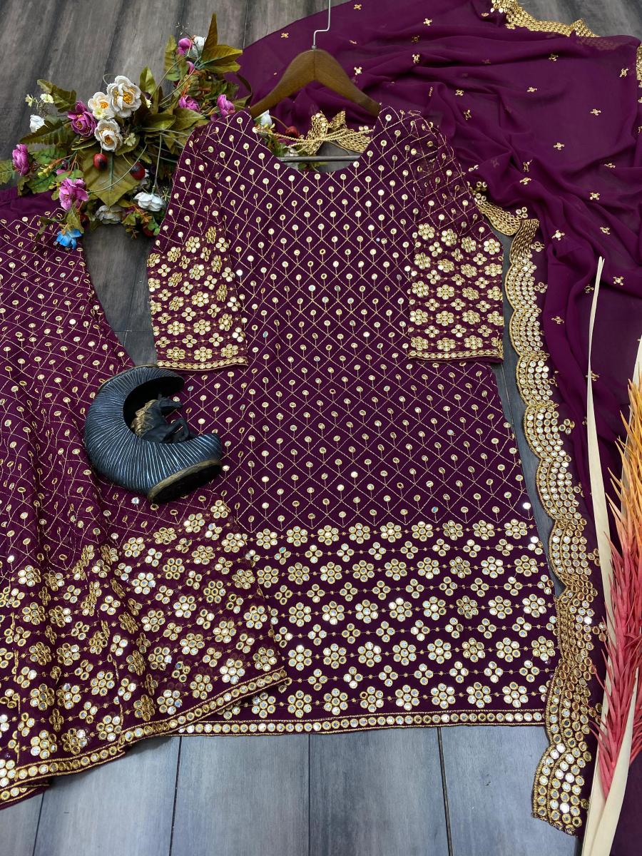 | FABRIC DETAILS | # SUIT FABRICS : GEORGETTE # TOP INNER : SILK # WORK : 9mm SEQUANCE EMBROIDERY WORK AND WITH FULL SLEEVES # HEIGHT: 37” inch # SIZE : S-36" M-38 “ L-40 “ XL-42 “ XXL-44 “# SARARA: GEORGETTE WITH 9mmSEQUANCE EMBROIDERY WORK FULL FLAIR FULL STITCHED FREE SIZE # HEIGHT: 40” inch# DUPATTA : GEORGETTE WITH 9mmSEQUANCE EMBROIDERY WORK 2.2meter |