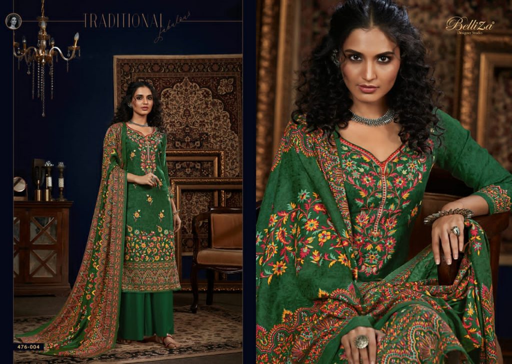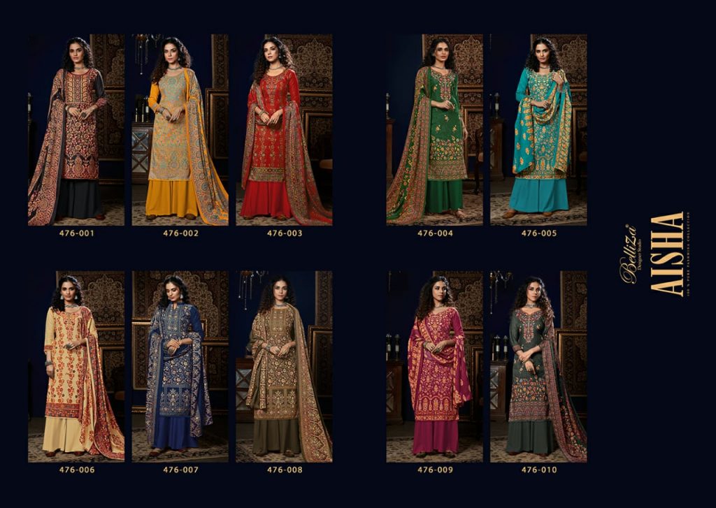 | DETAILS | # Aisha Vol 3 _*……BelliZa DesigNer StuDio……*_ _presents_ *”AISHA”* ♦️Top: 100% Pure Pashmina Digital Style Print (2.50 mtrs) ♦️Dupatta: Pure Pashmina Shawl with Four Side Lace (2.30 mtr) ♦️Bottom: Pure Pashmina Spun (3 mtrs apx) ♦️Pcs: 10 ♦️Selling Rate: 485/- (GST extra) |