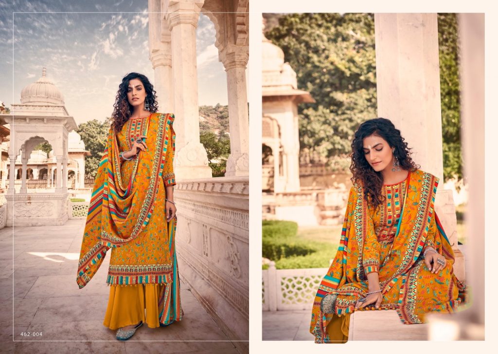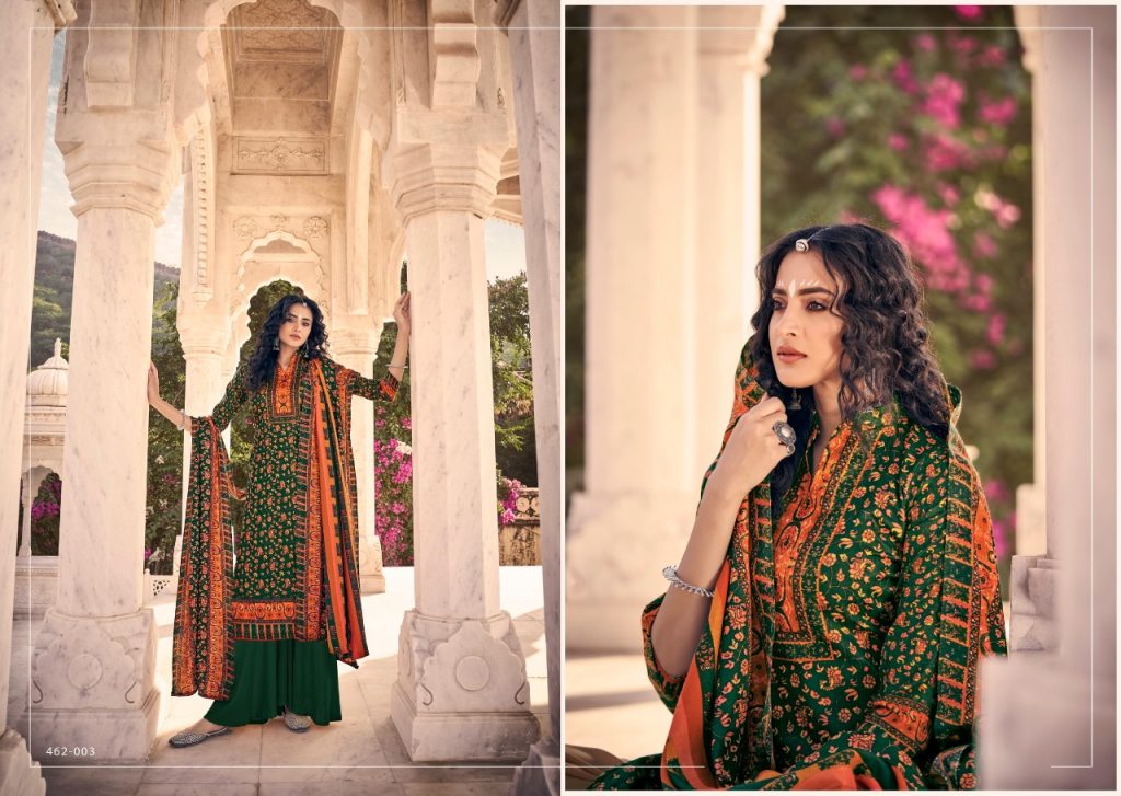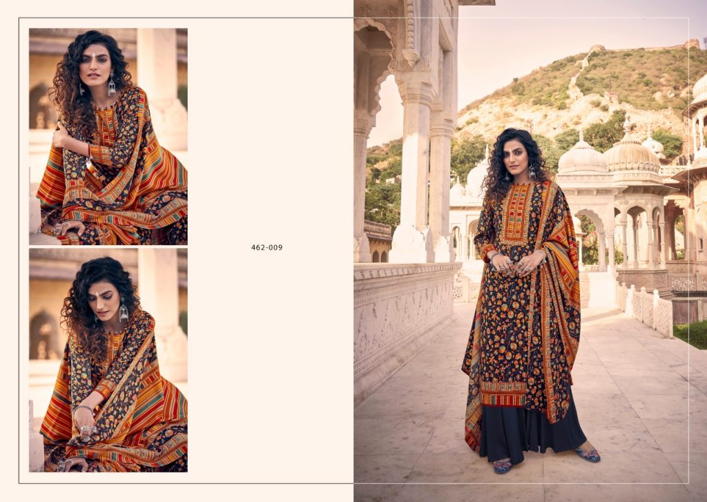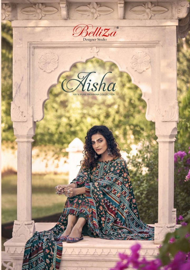 | DETAILS | BelliZa DesigNer StuDio _presents_ *”AISHA”* ♦️Top: 100% Pure Pashmina Digital Style Print (2.50 mtrs) ♦️Dupatta: Pure Pashmina Shawl with Four Side Lace (2.30 mtr) ♦️Bottom: Pure Pashmina Spun (3 mtrs apx) |