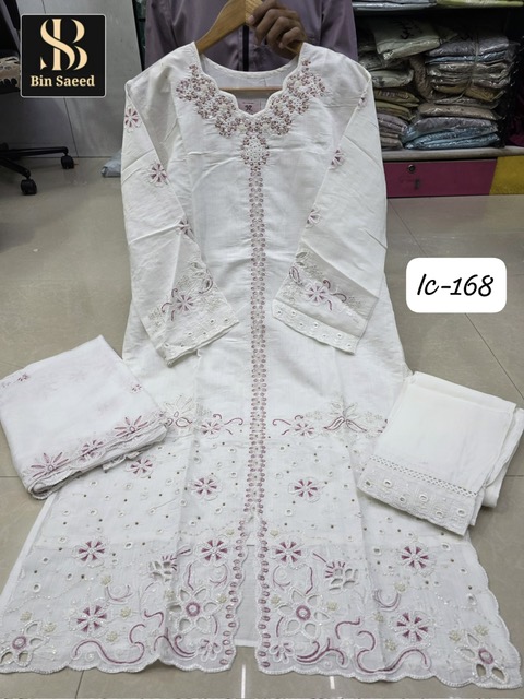 FABRICS :- ROMAN COTTON FABRIC WITH HEAVY HAND WORK EMB