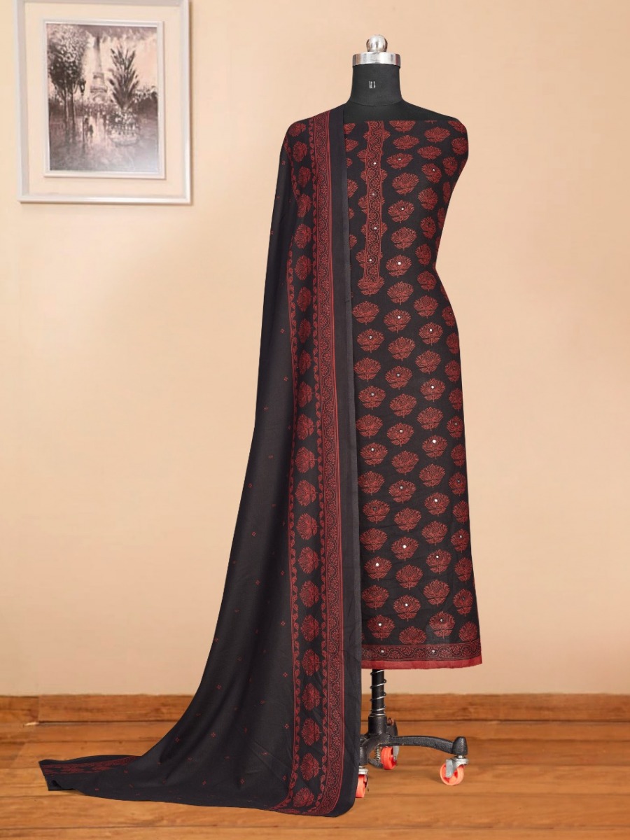 | DETAILS | Fabric details *TOP :-* _ Pure Alpine Discharge Print With Mirror Work ._ *BOTTOM* :- _ Pure Alpine Dyed ._ *DUPATTA* :- _ Pure Alpine Discharge Print ._ |