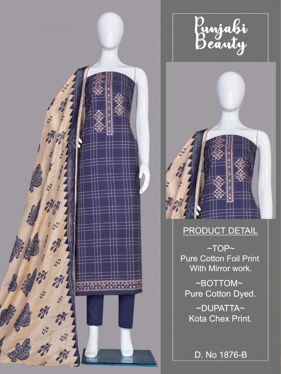 | DETAILS | *FABRICS* *TOP :-* _ Pure Cotton foil print with MIRROR work . _ *BOTTOM* :- _Pure Cotton solid dyed _ *DUPATTA* :- _ KOTA CHEX PRINT _ |