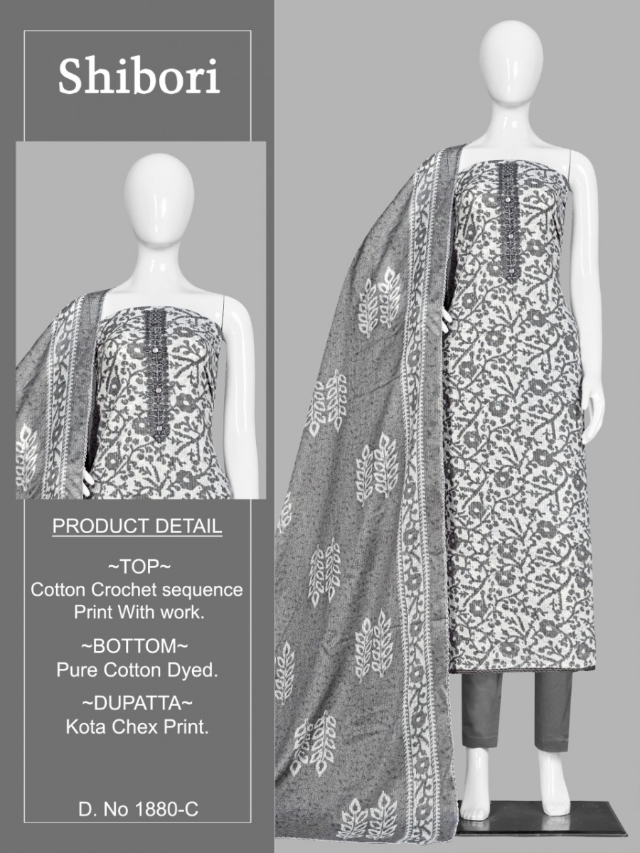 | DETAILS | *FABRICS* *TOP :-* _ Pure Cotton Print With CROCHET EMBROIDERY work . *BOTTOM* :- _Pure Cotton Dyed ._ *DUPATTA* :- _ KOTA CHEX Print ._ |