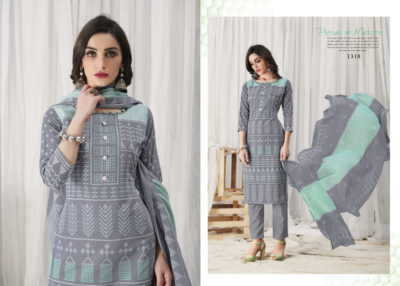 | DETAILS | TOP :-* _ Pure Cotton Print With Work .2.5Mtr *BOTTOM* :- _Pure Cotton Dyed ._ *DUPATTA* :- _ Pure Cotton Print .2.25Mtr |