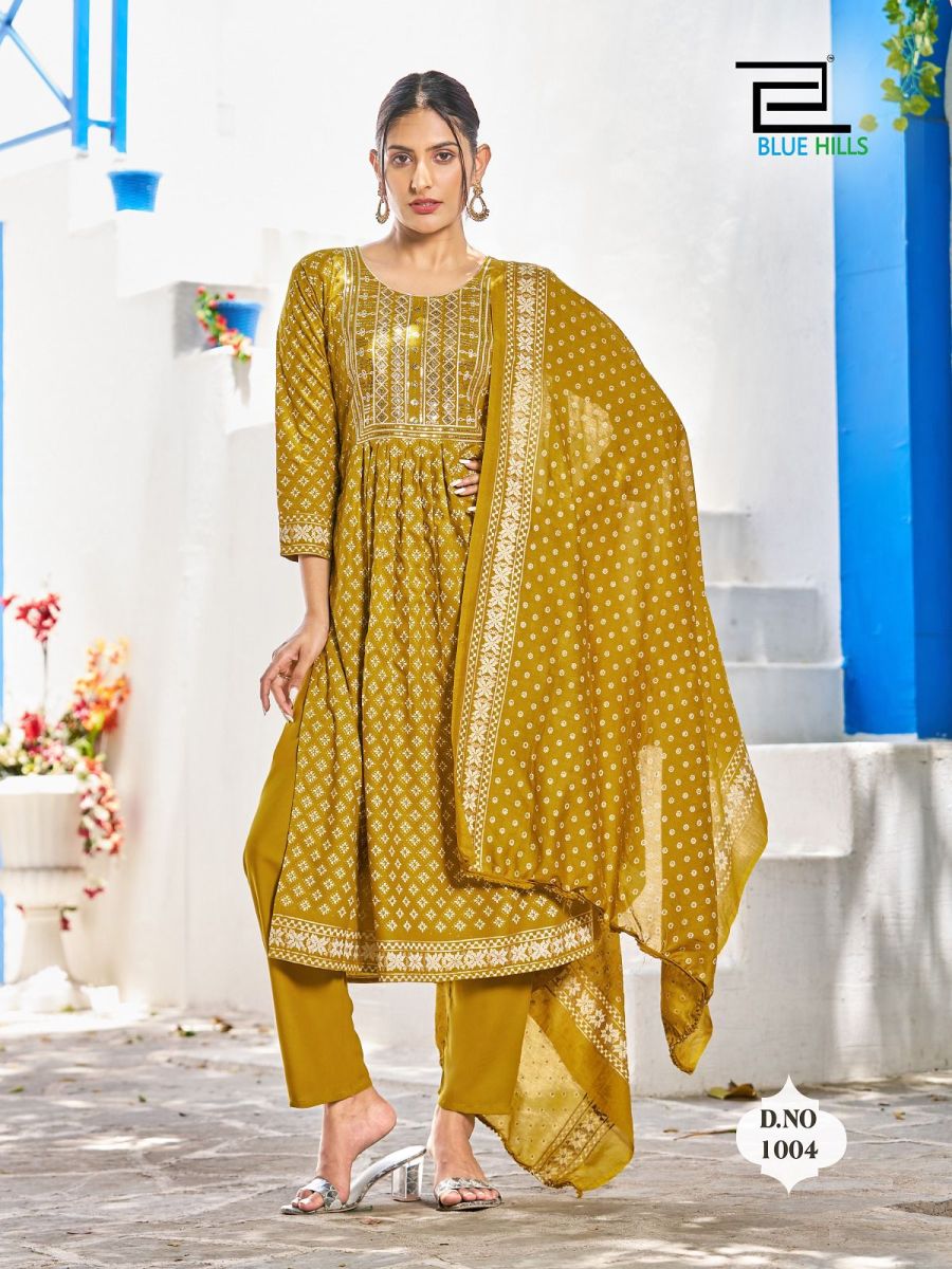 | DETAILS | **Fabric - *RAYON 14KG FOIL PRINT*DUPATTA - *Chanderi foil print with pom-pom*Pattern-: *Nayra Cut*Size - *M (38) L (40) XL (42) XXL (44) 3XL (46)*8 DESIGNS CATALOGUE ** |