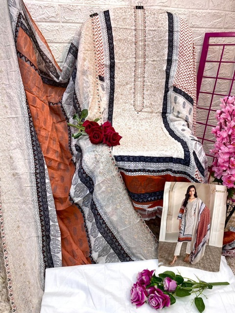 | DETAILS | **FABRIC DETAILS:-Top : *Jam cotton with heavy self wort (cut:2.40mtr)**Bottom : semi lawn (cut:2.40mtr)**Dupatta: pure mal mal Cotton with cut work (cut 2.30 aprox )* |