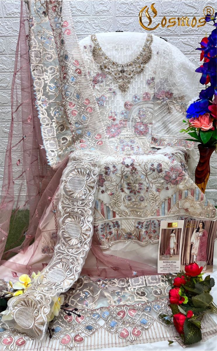 FABRIC DETAILS :- Top : * Organza with heavy embroidery work with hand work on neck*semi StichBottom & Inner : *Dull Santoon with work *DUPATTA- * butterfly net duppta with heavy embroidery pallu *COSMOS GOLD 23 SALWAR SUITS WHOLESALE