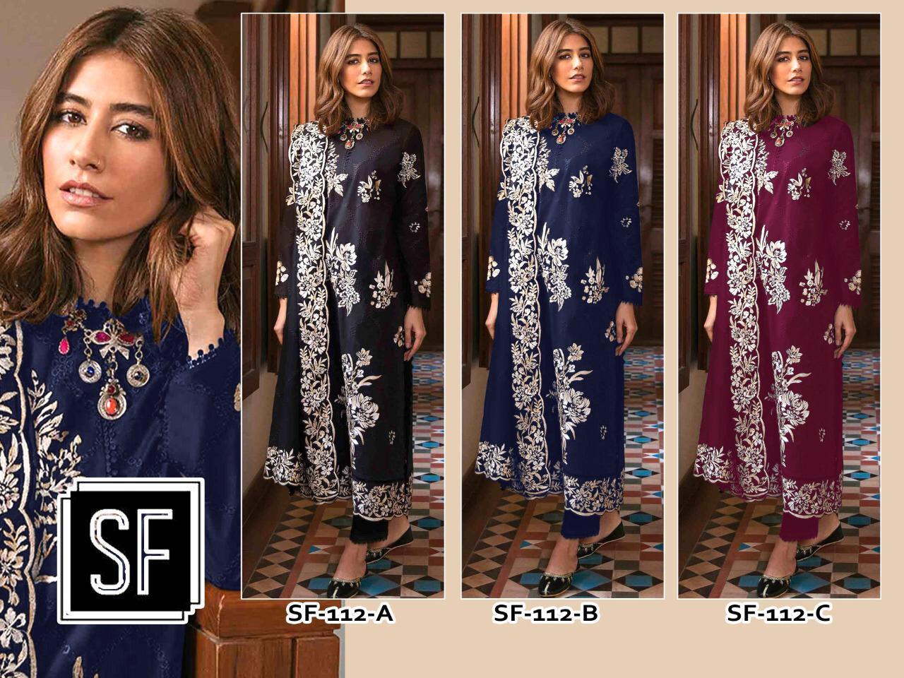 SF-112-A TO C PAKISTANI EMBROIDERED SALWAR KAMEEZ CATALOGUE