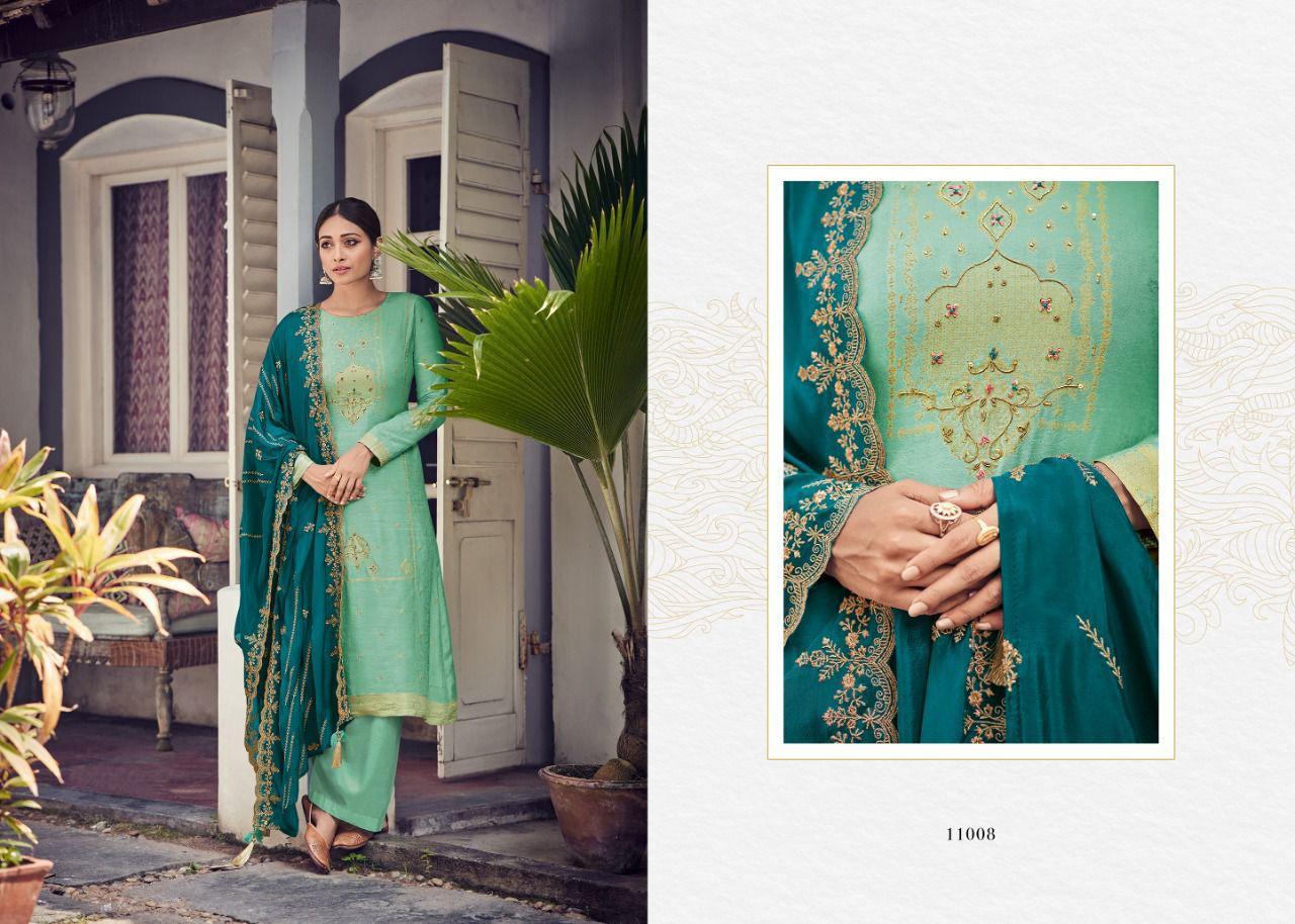 | DETAILS | Top - Pure viscose weave Jequard with hand embroideryBot - Pure Jam cotton Dup - Pure chinon with embroidery & tussles attached |
