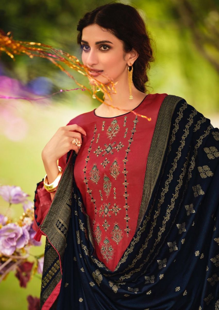 | DETAILS | Top - Tussar silk with embroideryBot - Dull santoonDup - Pure viscose Jequard |