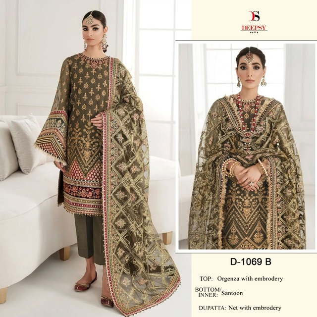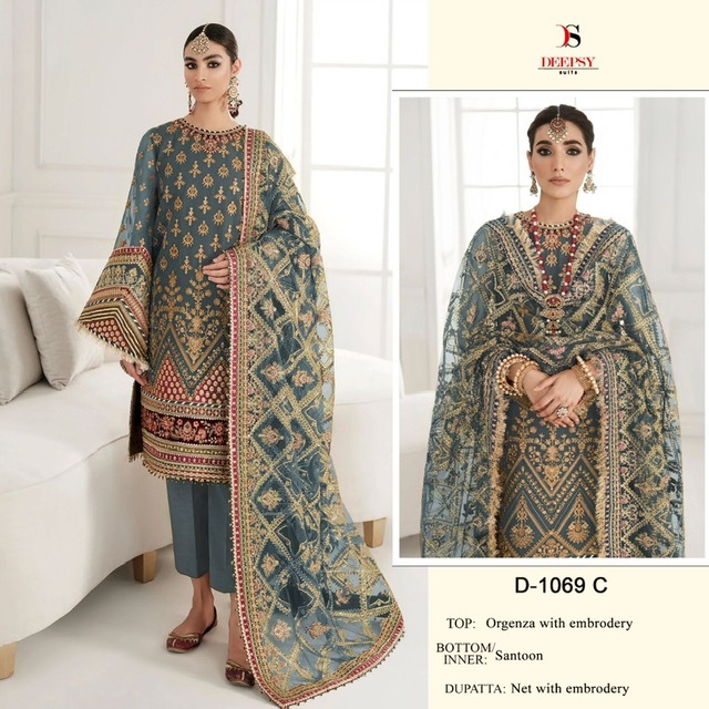 DEEPSY SUITS 1069 SERIES ORGANZA TOP BOTTOM WITH DUPATTA WHOLESALER SURAT
