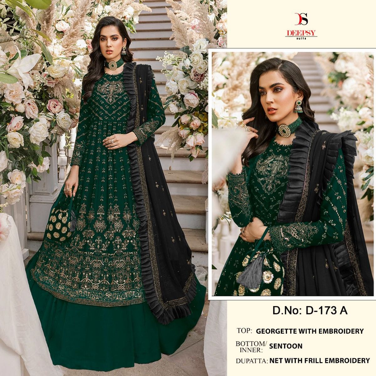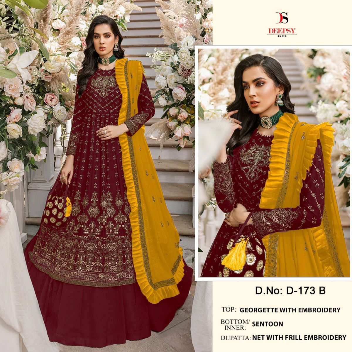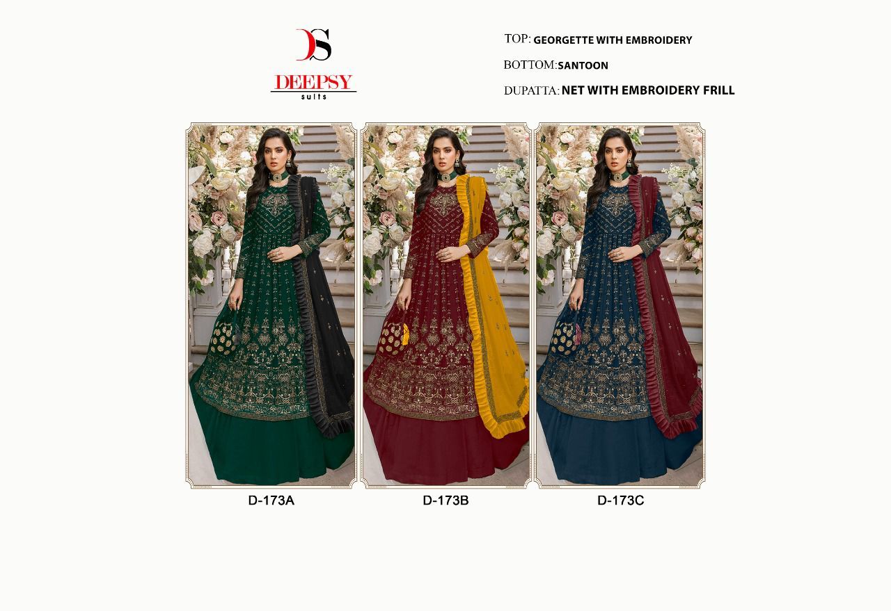 ( DEEPSY SUITS 173 SERIES GEORGETTE WITH EMBROIDERY SUITS WHOLESALE ) Buy in wholesale price