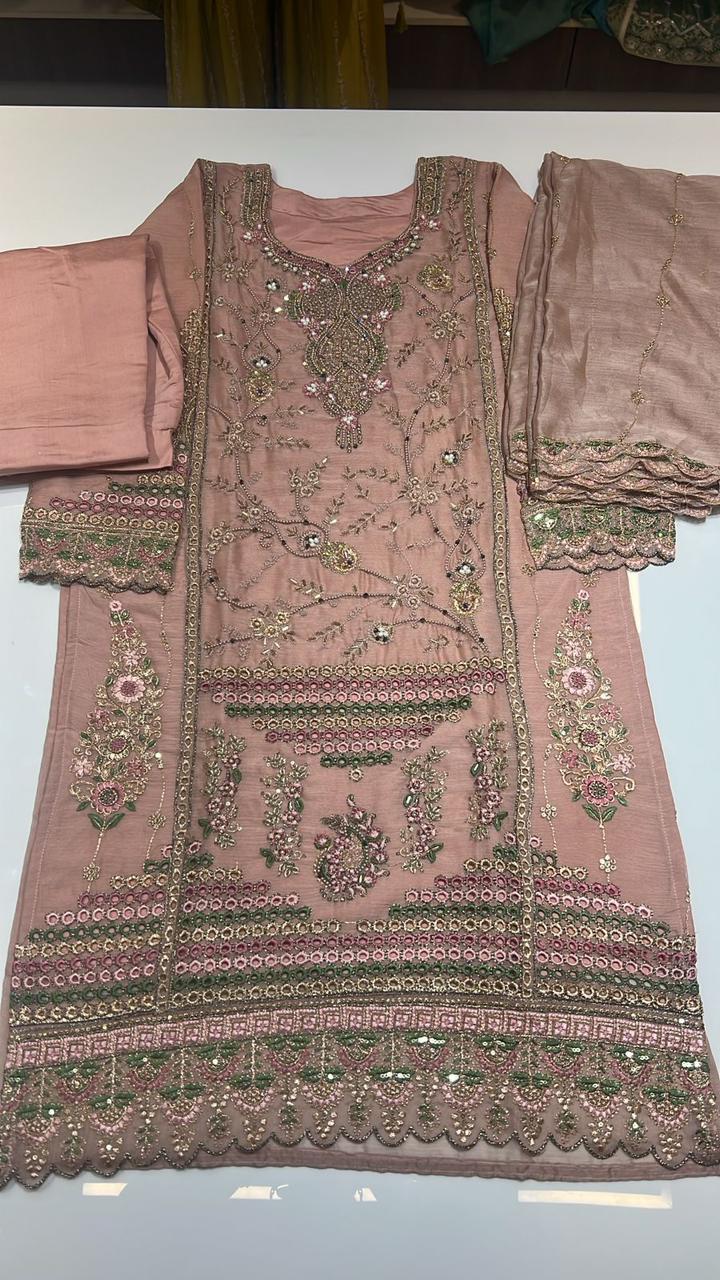 Top -Chiffon with embroidery & khatli work (semi stich)