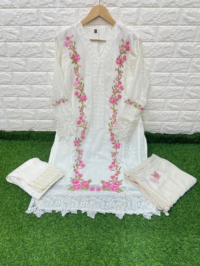 | DETAILS | ****Fabric Details* *Top -Georgette with embroidery & handwork work with santoon innerBot -Cotton Lycra stiched pant styleDup -Pure Nazmeen chiffon with embroidery attached with laceSize- Xl-XXL* |