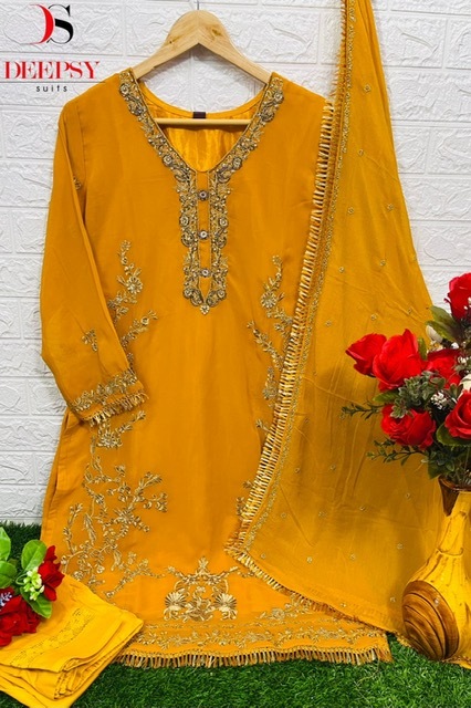 | DETAILS | ***FABRIC Top -Georgette with embroidery & Khatli work with santoon innerBot -Cotton Lycra stiched pant styleDup -Pure Nazmeen chiffon with embroidery attached with laceSize- Xl (42”)with extra margin ( can be stiched up to 44”) |