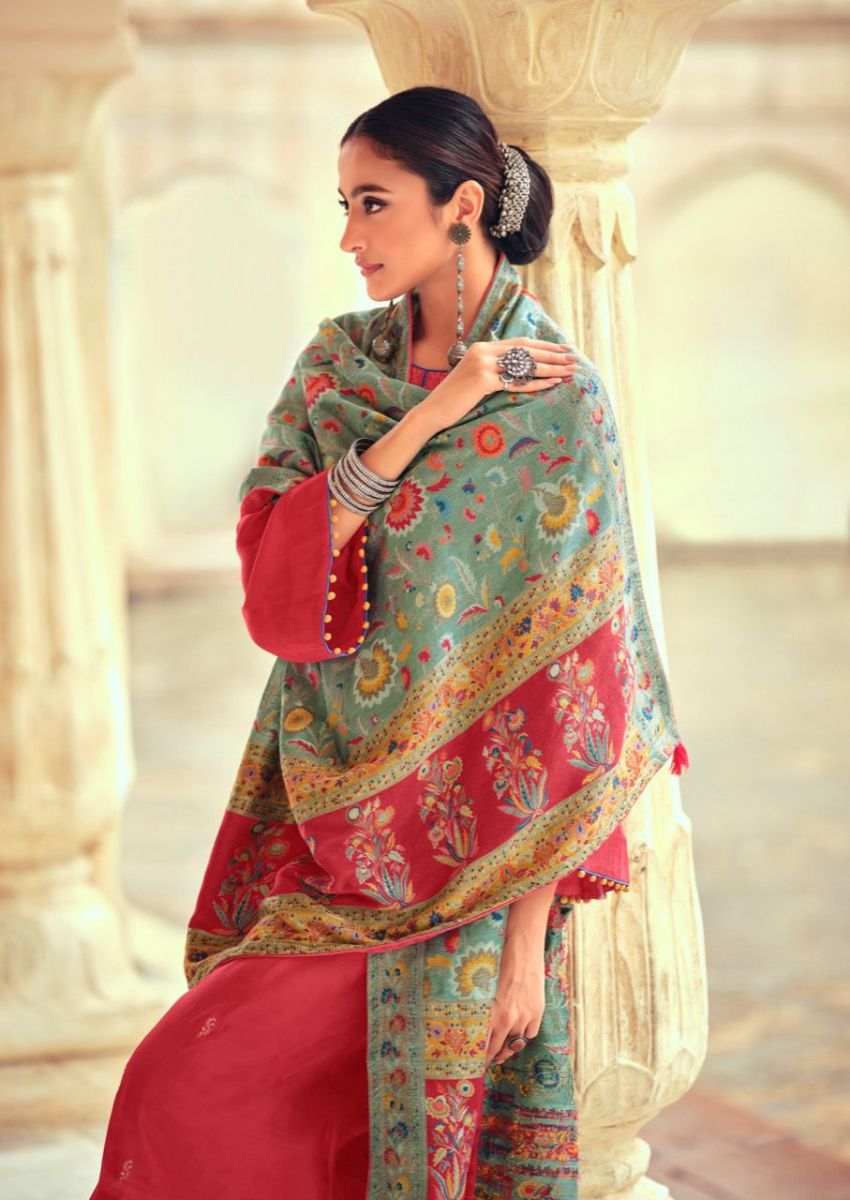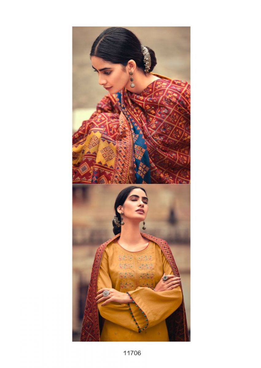| DETAILS | Top - Tussar silk with embroideryBot - Dull santoonDup - Pure viscose meena weave Jequard |