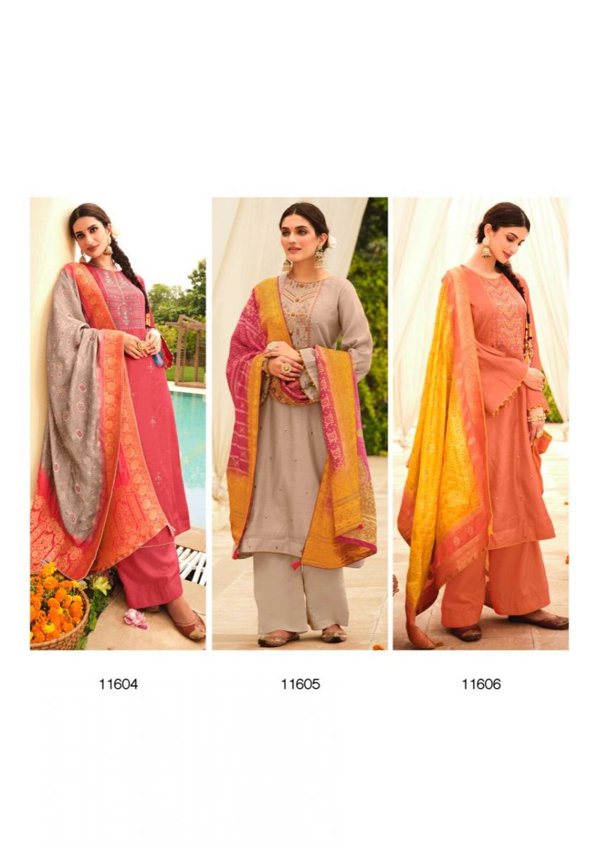 ( DEEPSY SUITS CHUNARI 11601 TO 11606 TUSSAR SILK EMBROIDERY SUITS AT WHOLESALE ) Buy in wholesale price