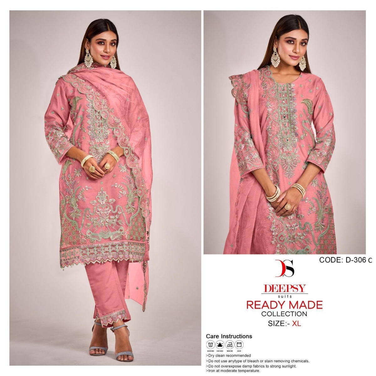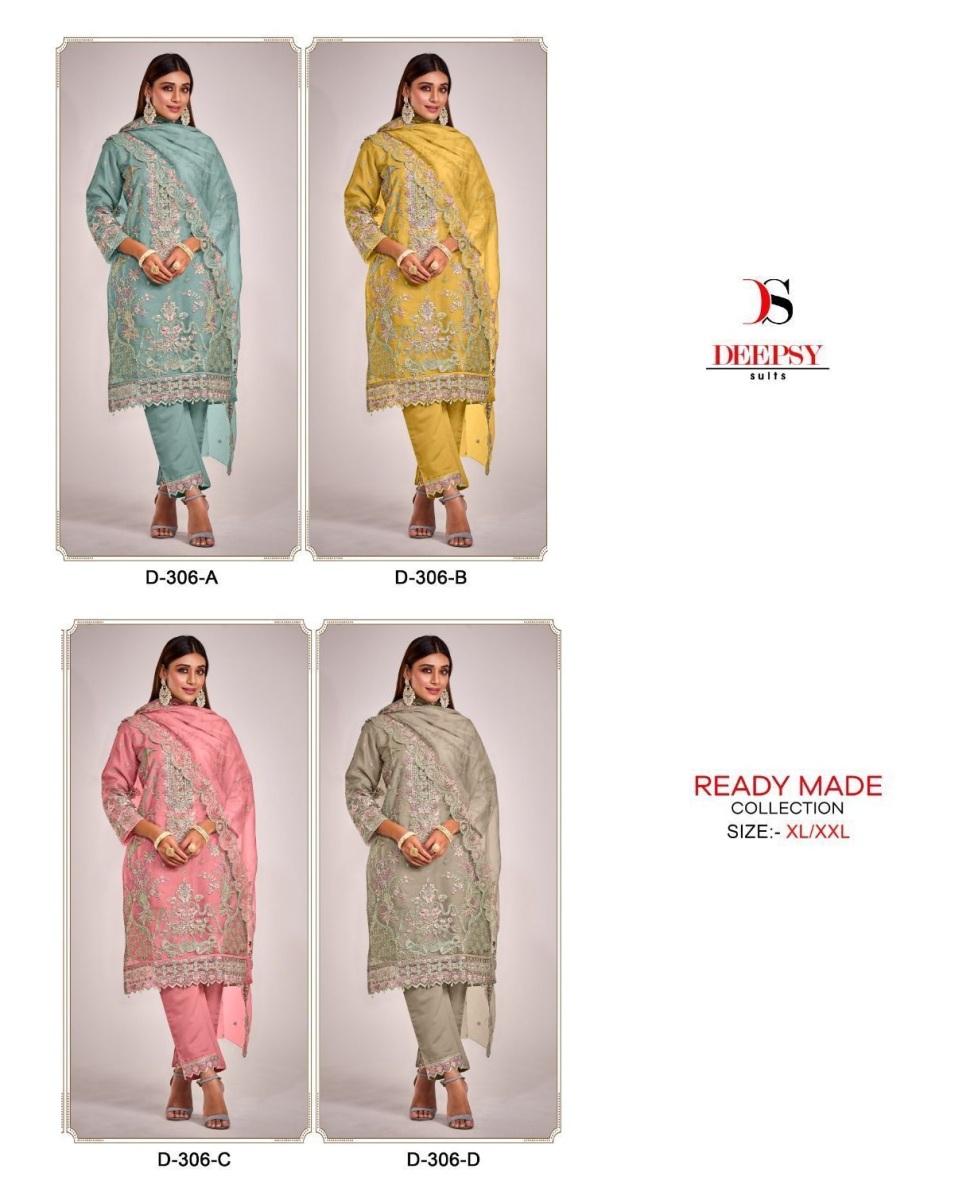 FABRIC DETAILS :- Top -Pure orgnaza with embroidery & khalti work with innerBot - viscous silkDup -Pure organza with embroiderySize- Xl-XXLDEEPSY SUITS D 306 SERIES READYMADE SUITS