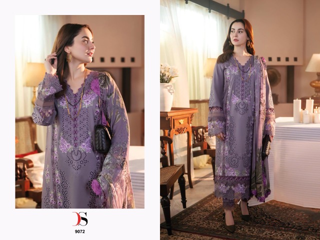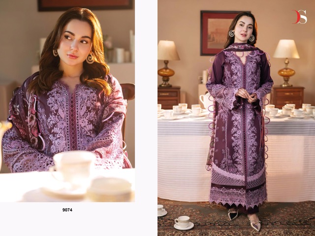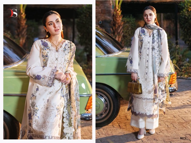 | **FABRIC DETAILS:- Top – Pure cotton heavy self embroidery attached with laces Bot – cotton solid Dup – Cotton digital print Pcs:4 *Rate – 1149(Cotton dup ) |