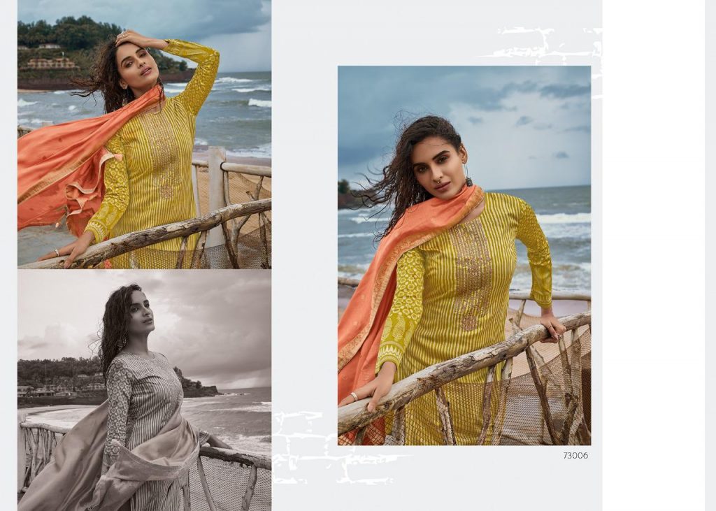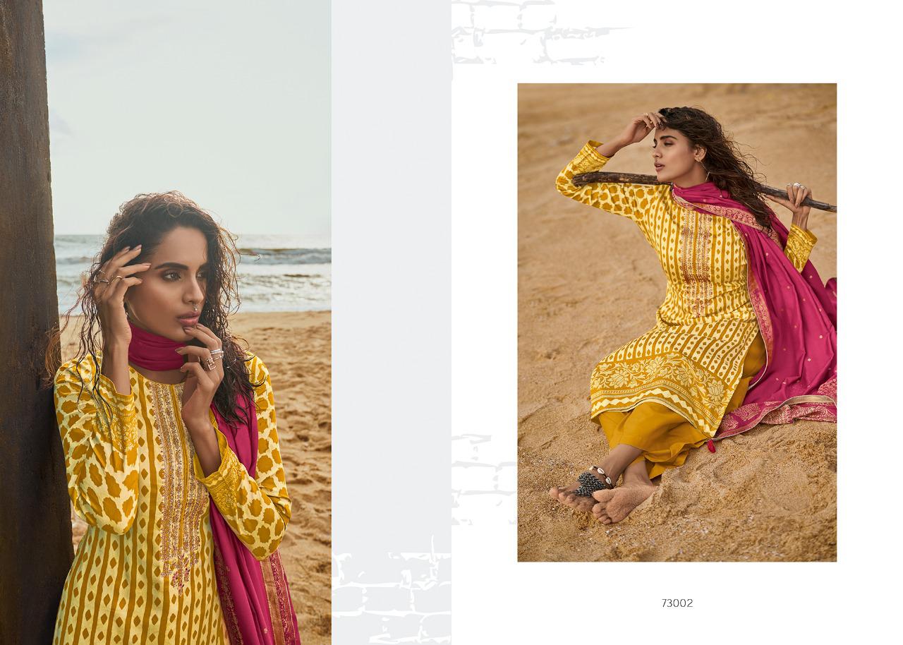 | DETAILS | *Mahira Pasmina by DEEPSY SUITS Top – Self woven Pasmina print Bot – Pasmina solid Dup – Pure modal silk Jequard dupatta Designs:6 *Rate – 999+GST |
