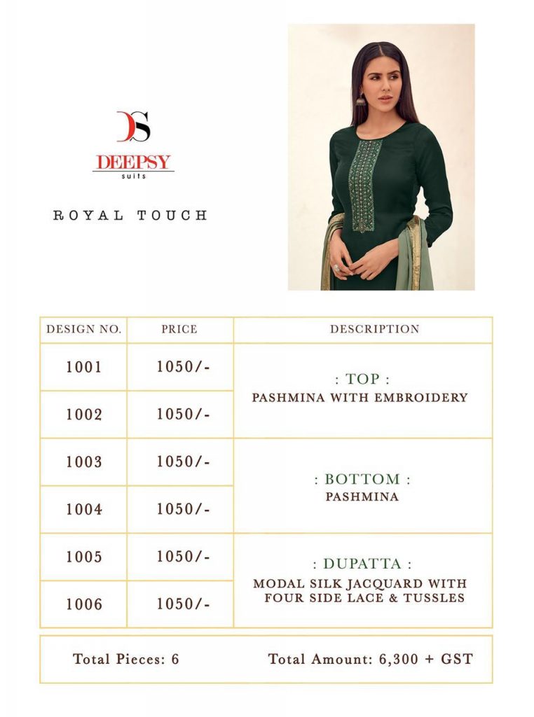 DEEPSY SUITS ROYAL TOUCH PREMIUM PASHMINA COLLECTION | WHOLESALE