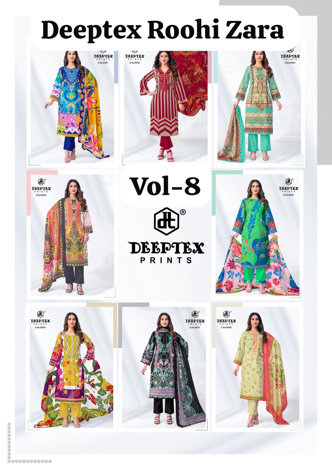 DEEPTEX PRINTS ROOHI ZARA VOL 8 COTTON SUITS