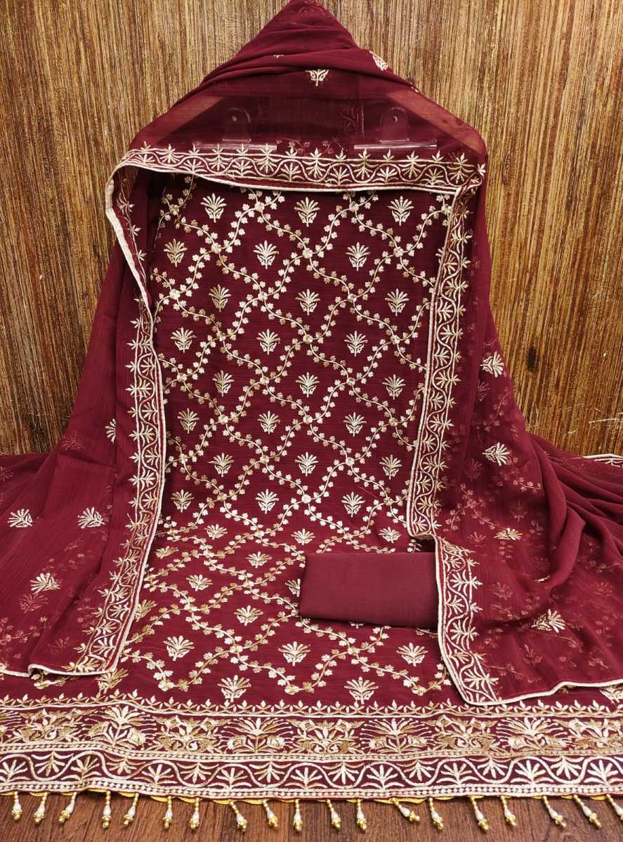| FABRIC DETAILS | Top Fabric :- ZOMATO SILK WITH ZARI WORK AND JALAR LACEBOTTOM +INNER Fabric :- F T MICRODUPATTA ;- ZOMATO SILK WITH ZARI WORK |